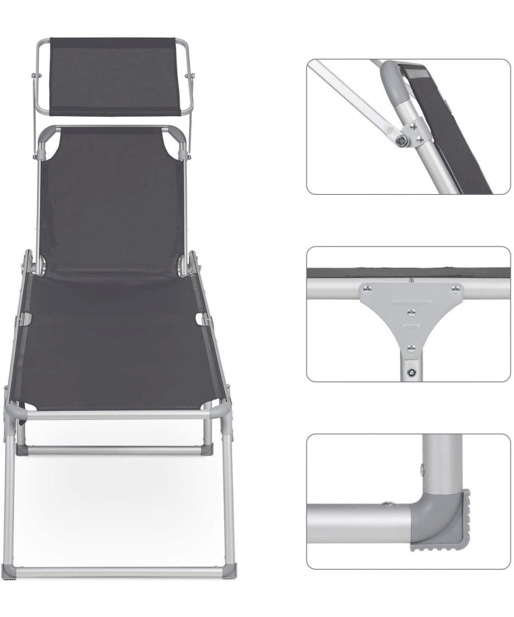 Gartenliege mit Sonnendach Grau 65 x 200 x 48 cm