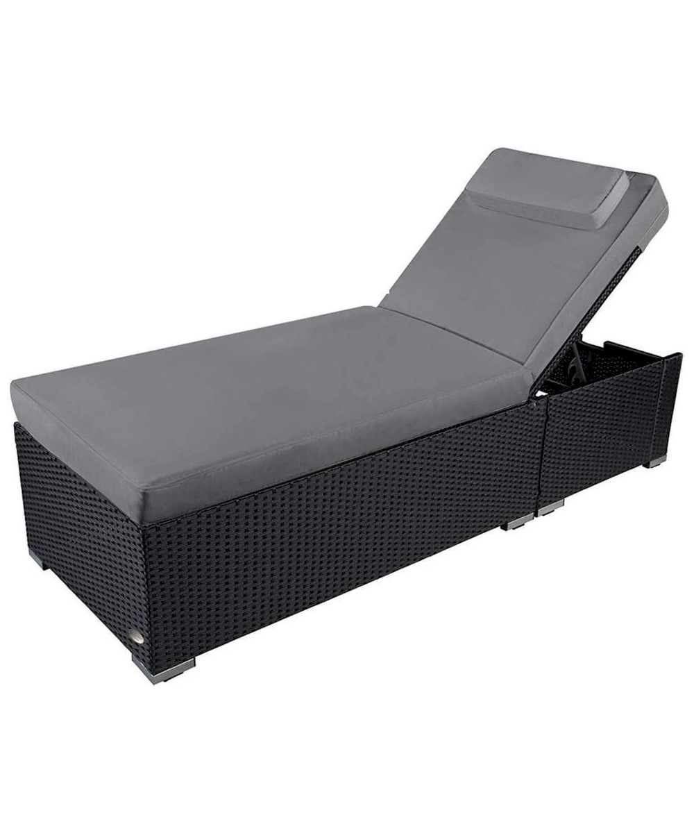 Polyrattan Sonnenliege Verona High mit Rollen und verstellbare Rückenlehne grau/schwarz