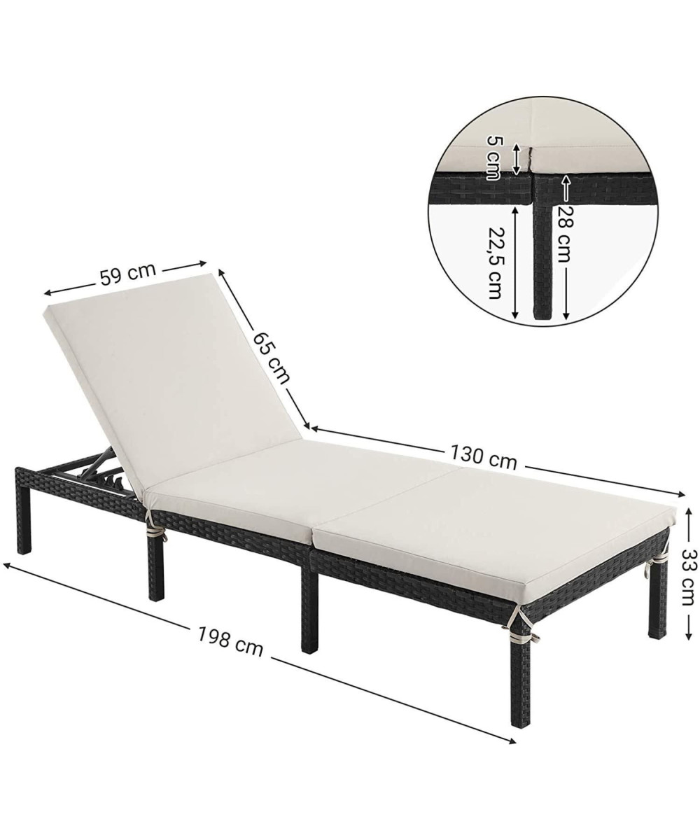 Weil Sie viel Platz zum Entspannen brauchen, hat SONGMICS diesen Liegestuhl mit einer Größe von 59 x 198 x 28 cm entworfen. Auf dieser Liege werden Ihre Füße nicht über die Auflage hinausragen!