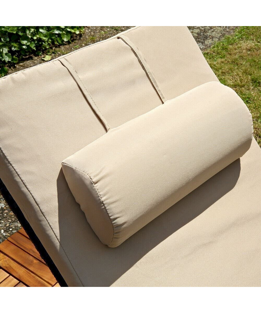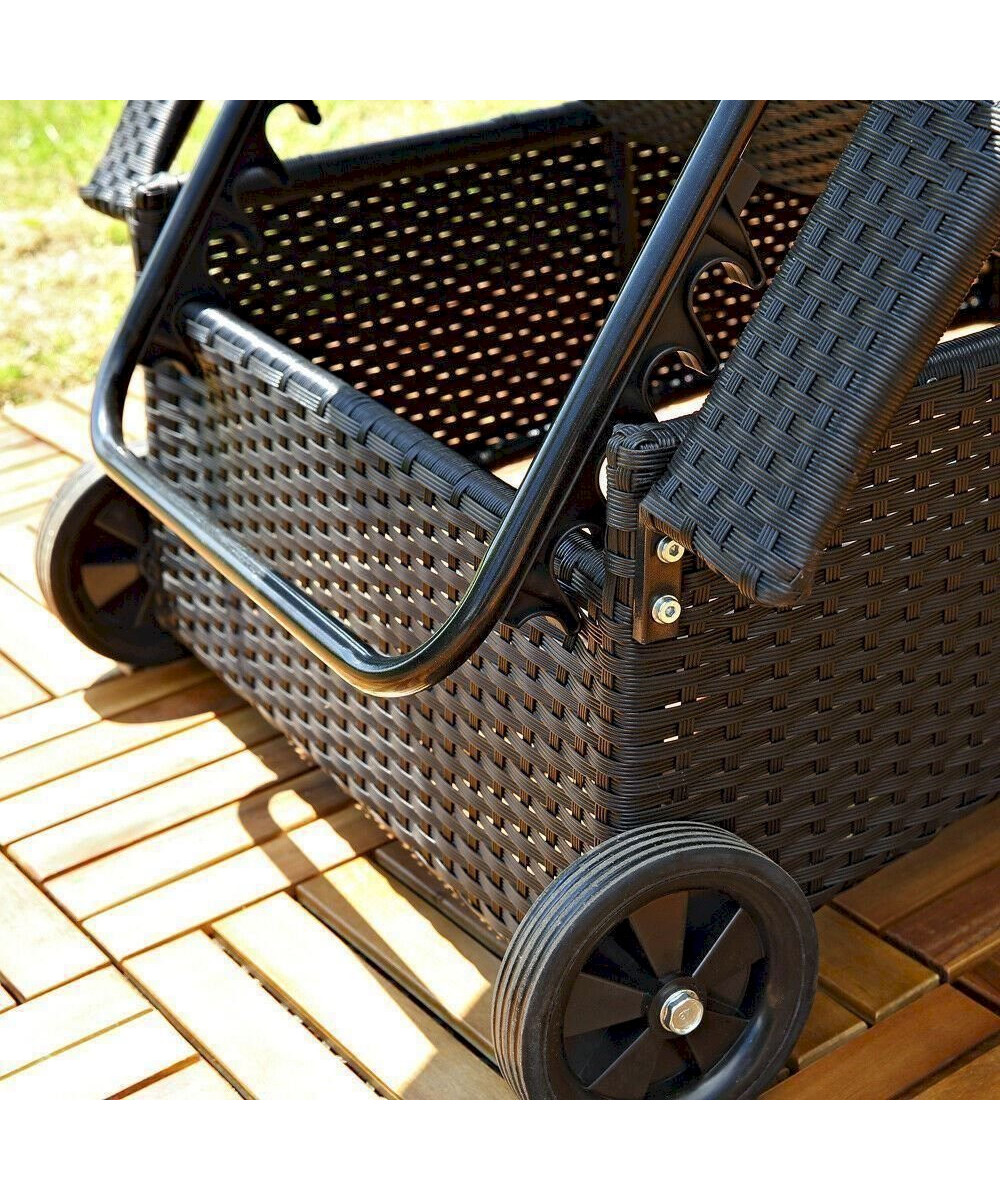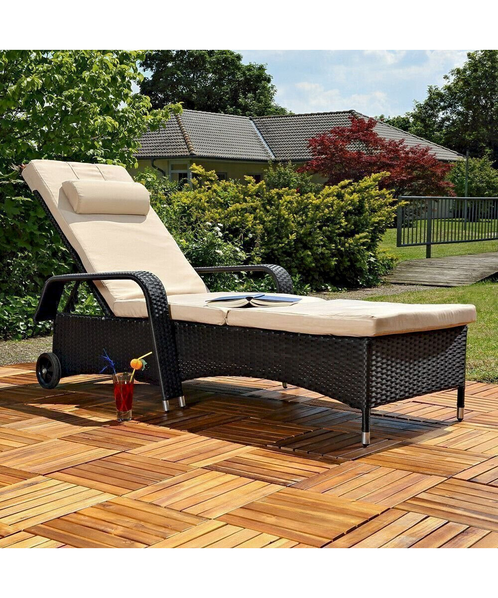 - 1 x Rattan-Liegestuhl mit Rollen inkl. Sitzkissen, Farbe: Schwarz / Beige