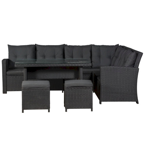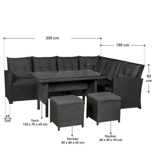 Polyrattan Lounge Santa Catalina schwarz Sitzgarnitur mit 1 Tisch, 1 Ecksofa und 2 Hocker