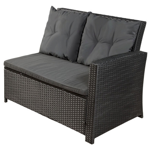 Die Lounge ist mit einem stabilen Gestell aus mehrfach verstrebtem Stahl in Käfigbauweise ausgestattet. Es verleiht der Gartenlounge einen sicheren Stand. Die umfassende Pulverbeschichtung schützt das Gestell vor Korrosion und äußeren Einflüssen.