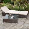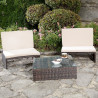 - 1 x Gartenset bestehend aus 2 Sesseln und 1 Tisch mit ESG Glasplatte, Farbe Braun / Beige