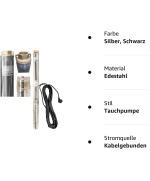 Tiefbrunnenpumpe 6000l/h Edelstahl Tauchbrunnenpumpe