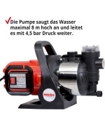 Die moderne Technik dieser Hauspumpe wird Sie begeistern. Lassen Sie sich täglich bei der Versorgung mit Brauchwasser in Ihrem Haushalt überzeugen, dass diese Pumpe ihren Job perfekt erledigt.