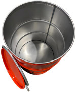 Dieses Metallfass mit einem Volumen von 210 Litern ist aus kaltgewalztem Metallblech gefertigt und außen durch Lackierung rostfrei.