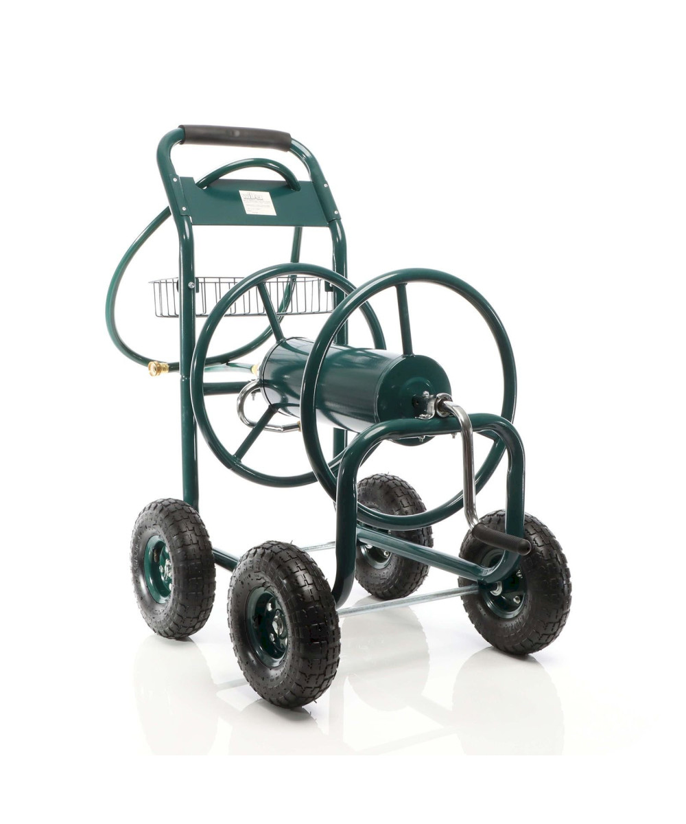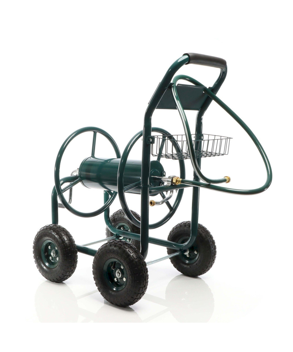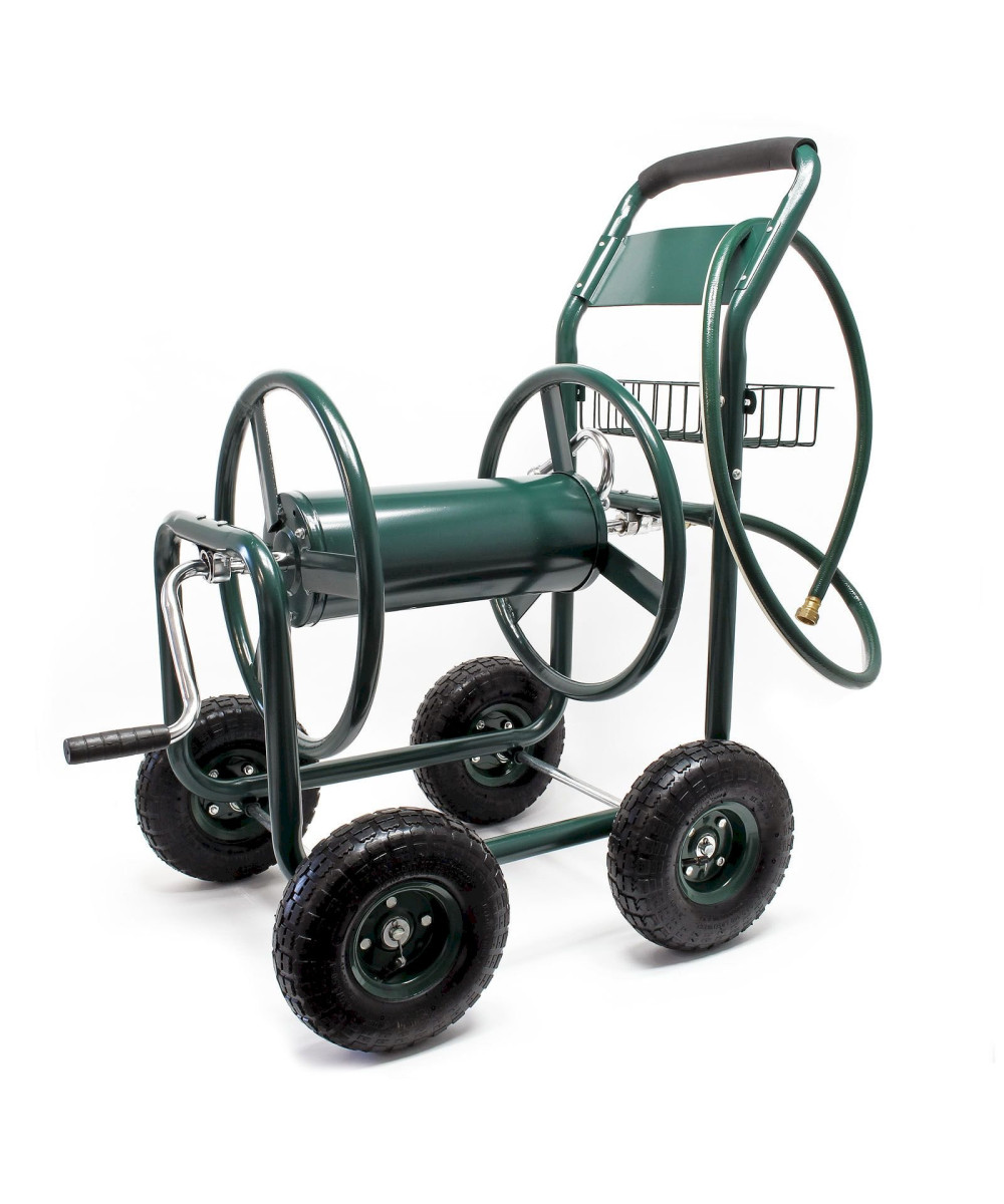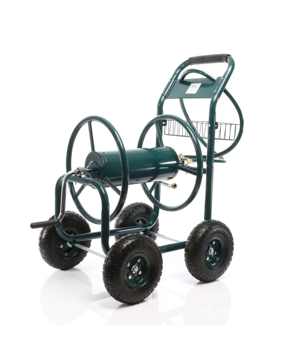 Dank der ca. 25 cm großen Luftreifen lässt sich der Wagen über alle unebenen Untergründe rollen und dank seiner Schnellkupplung kann jeder Gartenschlauch problemlos angeschlossen werden und mit der praktischen Handkurbel können sie den Schlauch ablassen und aufrollen.