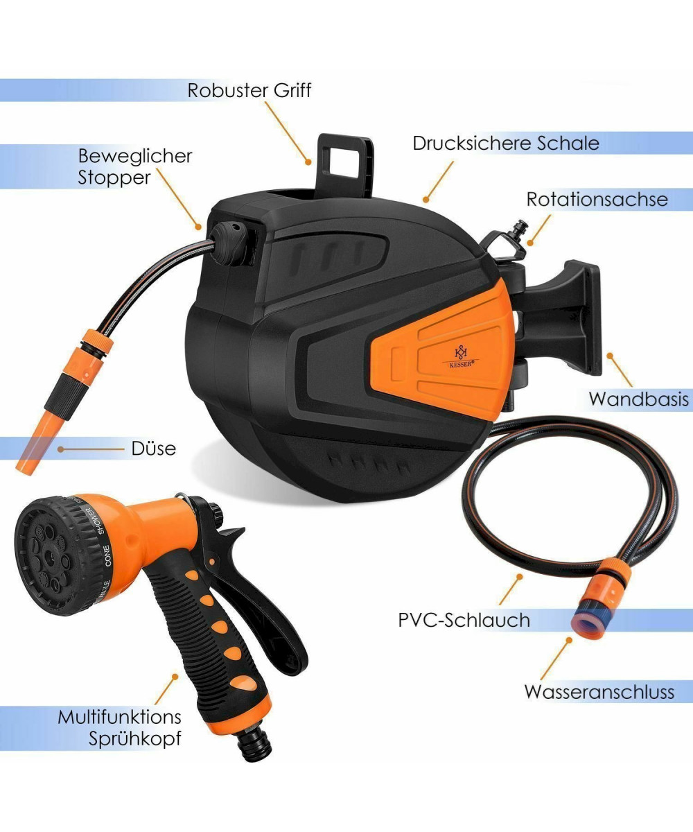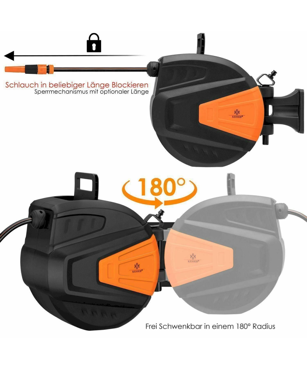 KESSER Schlauchaufroller Orange 30 Meter Wasserschlauchaufroller Schlauchtrommel Automatik