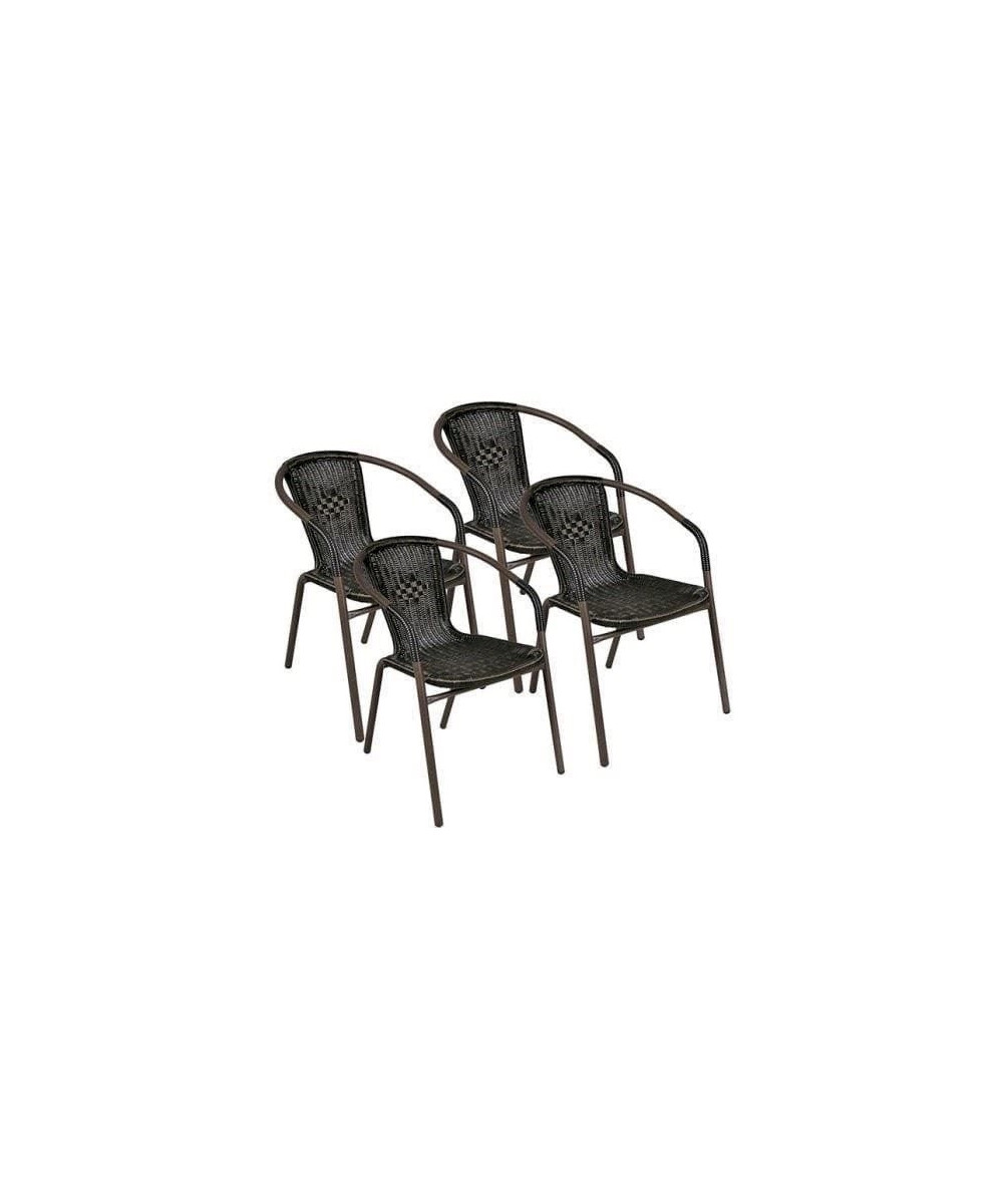 4er SET Stapelstuhl, ideal im Garten, auf dem Balkon oder auf der Terrasse geeignet. Material: Rattan und Stahl, Rahmenfarbe: braun gemustert, Rattan Farbe: dunkelbraun, Maße Stuhl H/B/T: 75 / 52 / 60 cm, Gewicht ca. 3,5 kg
