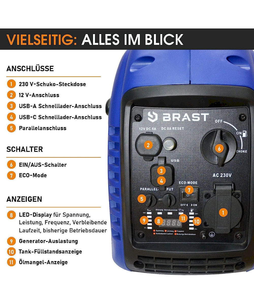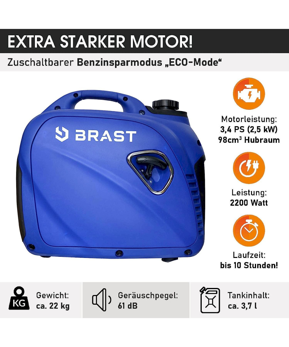 BRAST Inverter Stromerzeuger Benzin mit LED-Display Generator Stromgenerator 2200