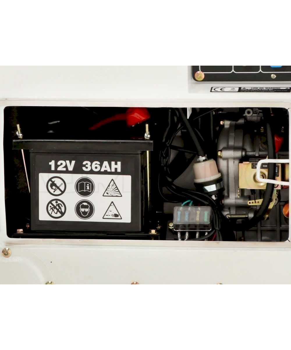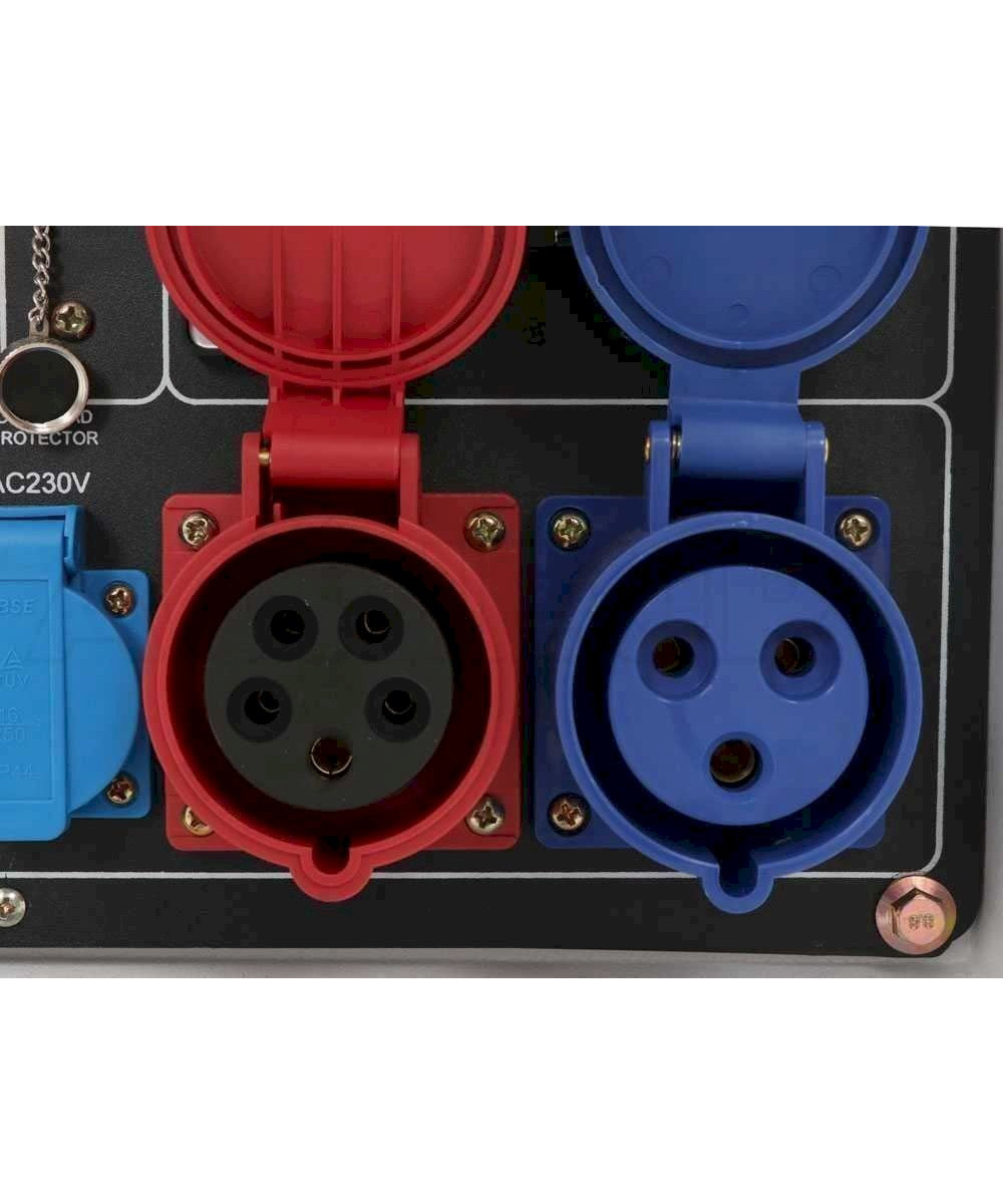 Der Stromerzeuger hat eine Kupferwicklung , max. einphasige Leistung 5800W, max. dreiphasige Leistung 6300W . Die Umwandlung von der dreiphasigen zur einphasigen Ausführung erfolgt durch den Hebel auf der Schalttafel. Benutzerfreundlich dank der kompakten Form .