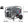 Der Stromerzeuger kann einfach dank der 2 Heckräder und des großen Frontgriffs transportiert sein, damit man Strom verfügbar haben kann. Auf der Unterseiten gibt es Gummidämpfer, die die Bewegung und die Vibrationen während der Verwendung.