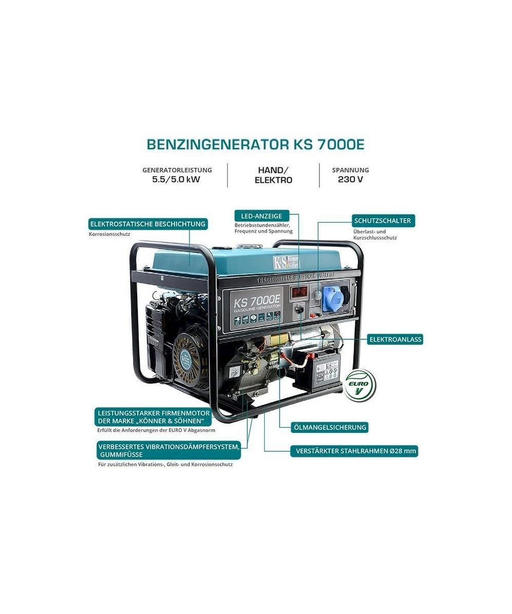 Könner & Söhnen KS 7000E einphasiger Benzin-Generator 5.5kW