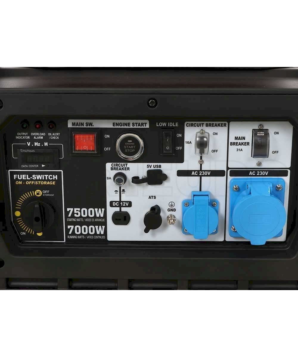 Der Stromerzeuger verfügt über einen Kupferwicklung und erreicht eine maximale einphasige Leistung von 7500W.