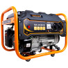 Mit diesem praktischen Begleiter sind Sie auch unterwegs stets mit Strom versorgt. Der solide 4-Takt Benzinmotor mit 7 PS und einer Phase kann auf einer Steckdose die gesamte Leistung von maximal 3300 Watt liefern. Sollen auf beiden Steckdosen Abnehmer angeschlossen werden, so liegen je Steckdose 1650 Watt an. Sie verfügen so über ein breites Spektrum an Nutzungsmöglichkeiten und können Ihre Abnehmer nach Bedarf betreiben. Der große Tank kann mit handelsüblichen Benzin befüllt werden und stellt so einen anhaltenden Betrieb sicher. Der Ölmangelsensor schützt den Motor vor Schäden durch einen zu niedrigen Ölstand. Sie starten den Generator über den Seilzug. Einmal angelaufen, erzeugt der Generator direkt die gewünschte Spannung und ist einsatzfähig.