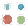 Aus hochwertigem Steinzeug gefertigt und für den täglichen Gebrauch bestens geeignet. Die traditionellen, keramischen Motive sind verspielt und vollflächig dekoriert - das bringt pure mediterrane Lebensfreude auf Ihren Tisch. 4 Designs in aufeinander abgestimmten Farben bringen das Mittelmeer auf Ihren Tisch.