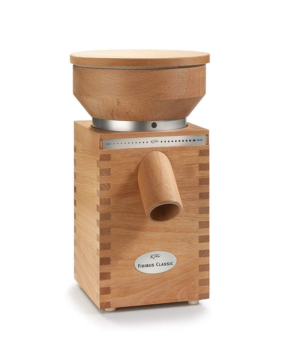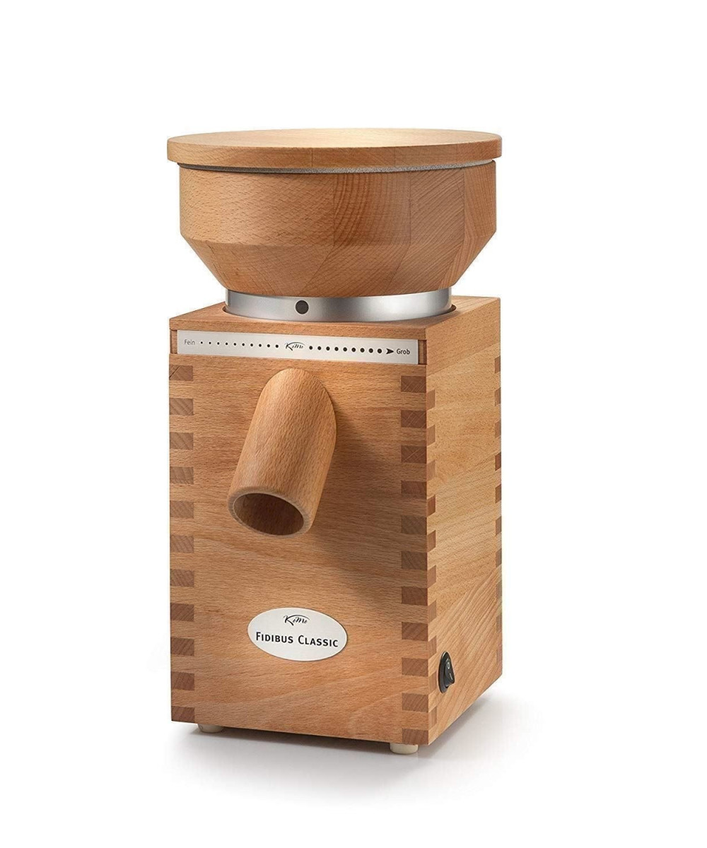 Getreidemühle Komo Fidibus Classic aus massivem Buchenholz. Motor 360 Watt.