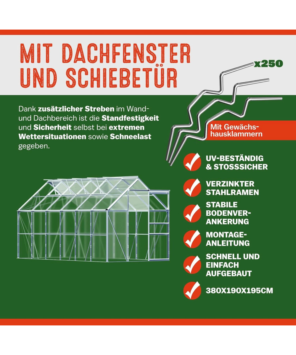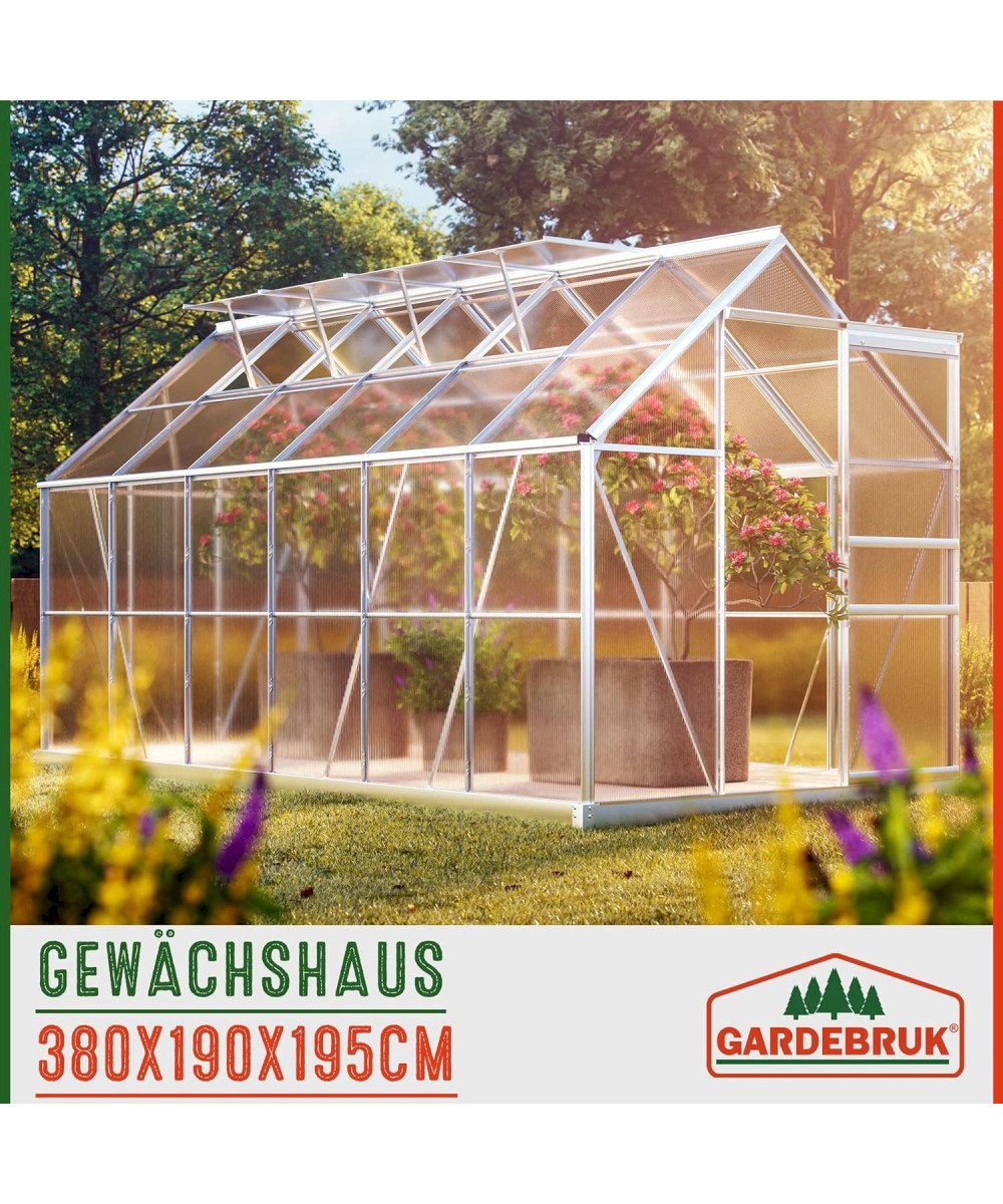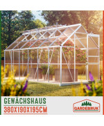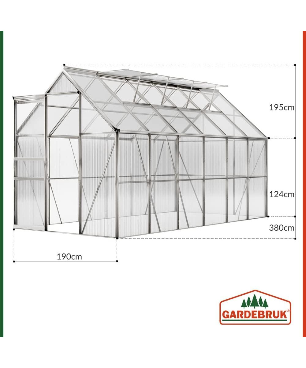 Alu Gewächshaus 380x190x195cm mit 4 Dachfenster