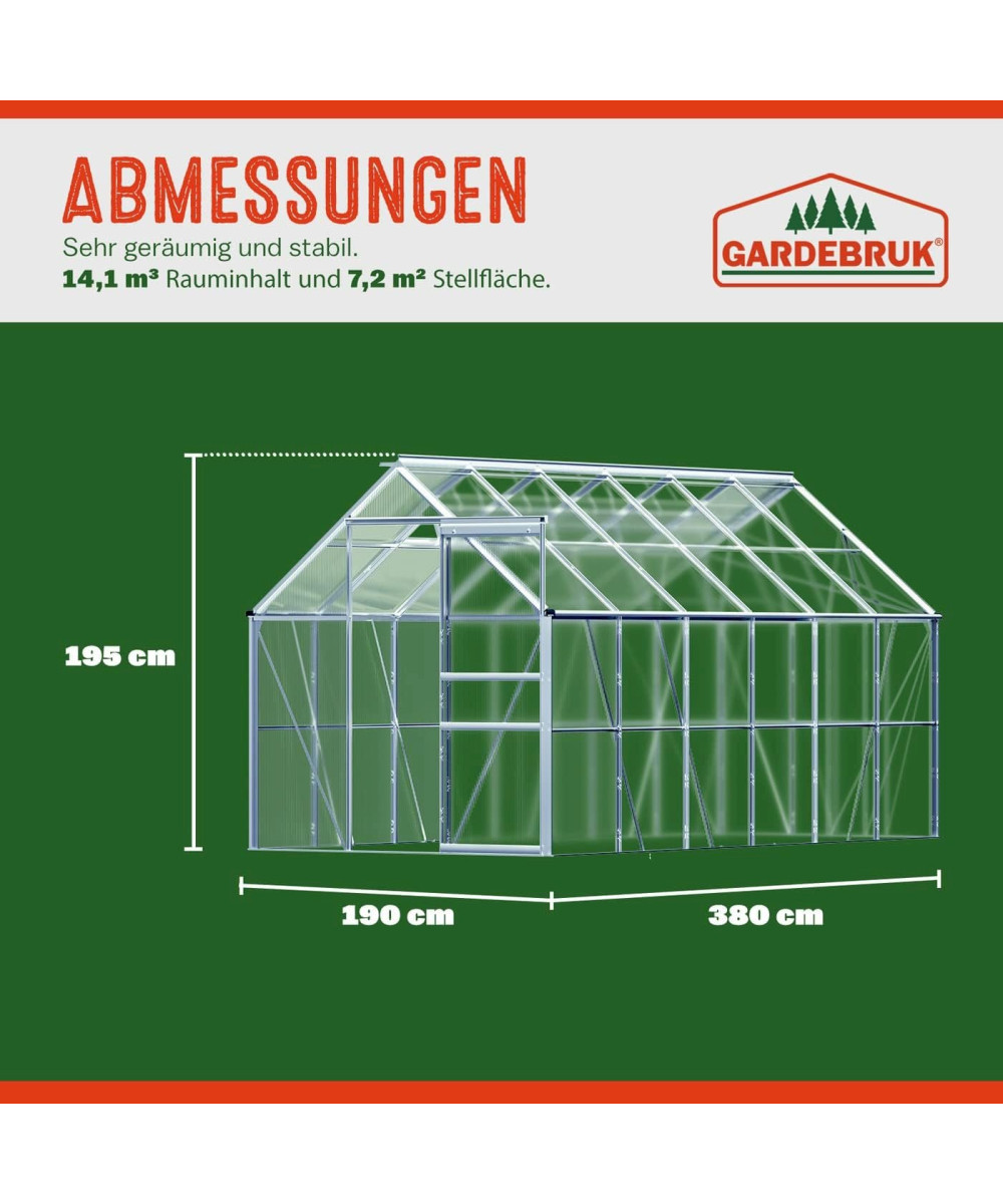 - Maße (LxBxH): 380 x 190 x 195 cm (Giebel)