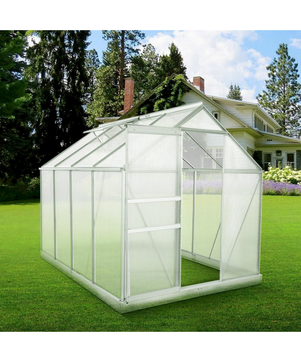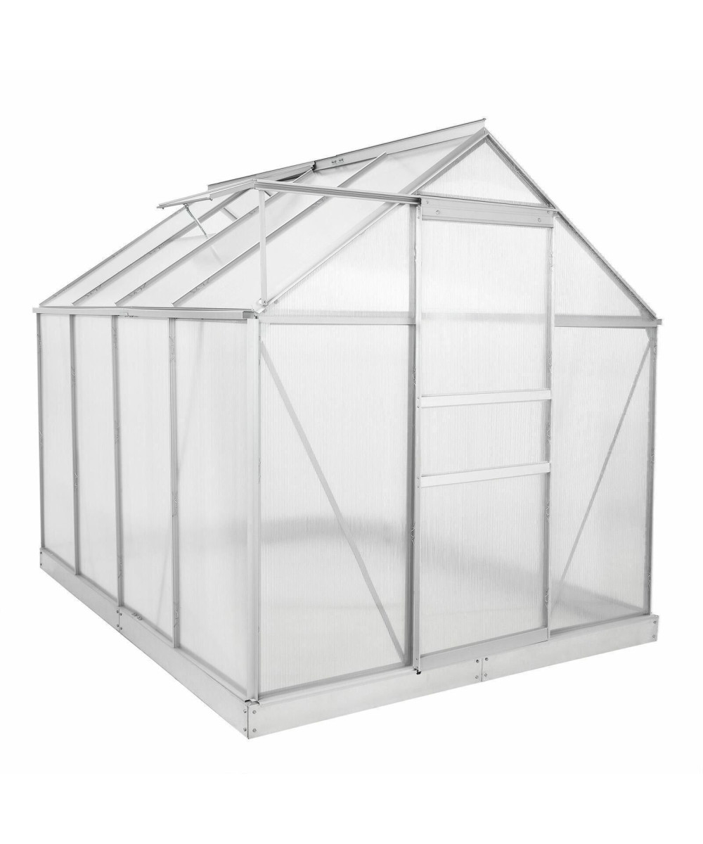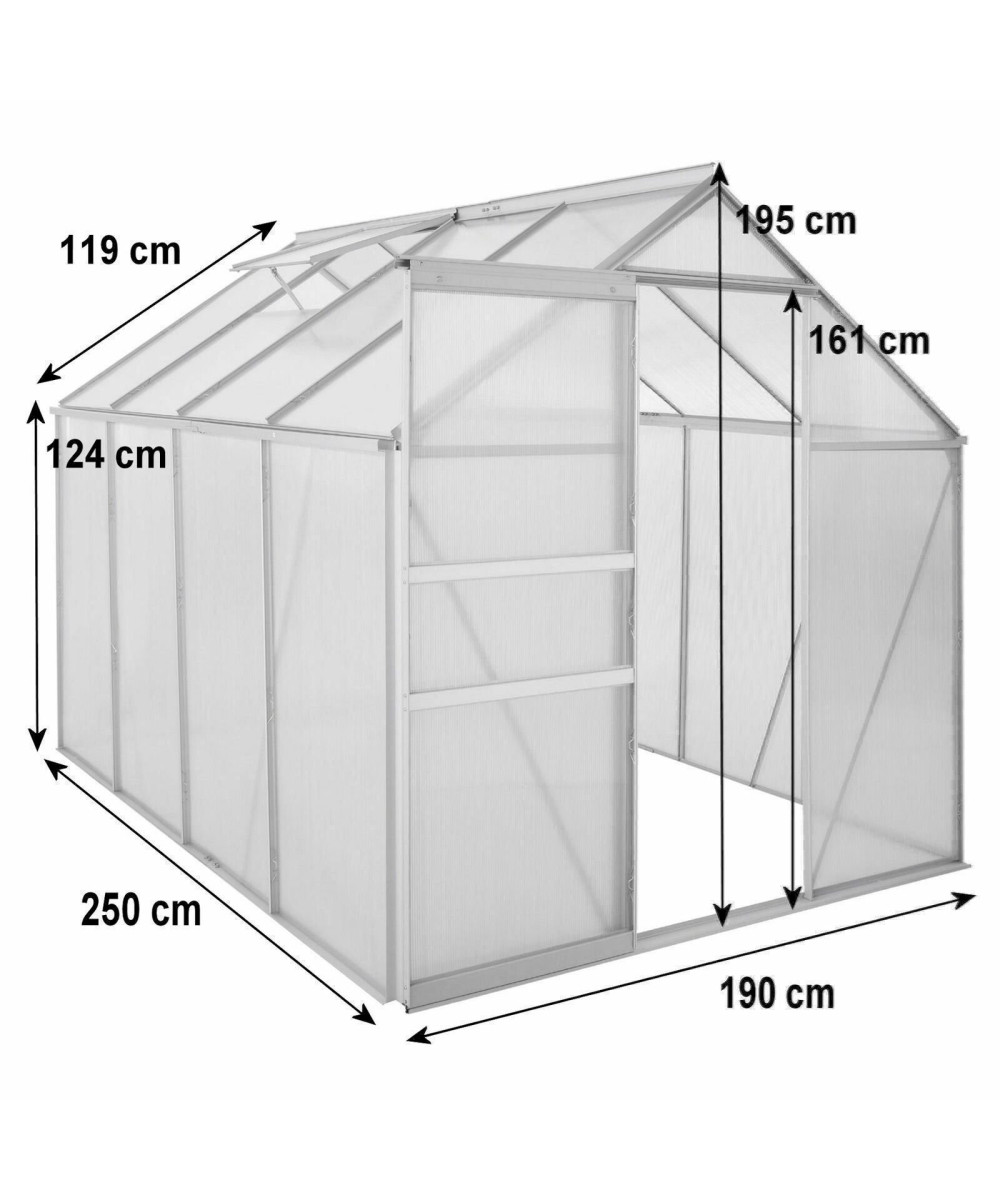 Zelsius Aluminium Gewächshaus SET (L) 250 cm x (B) 190 cm, 6 mm Hohlkammerstegplatten + Zelsius Fundamentrahmen