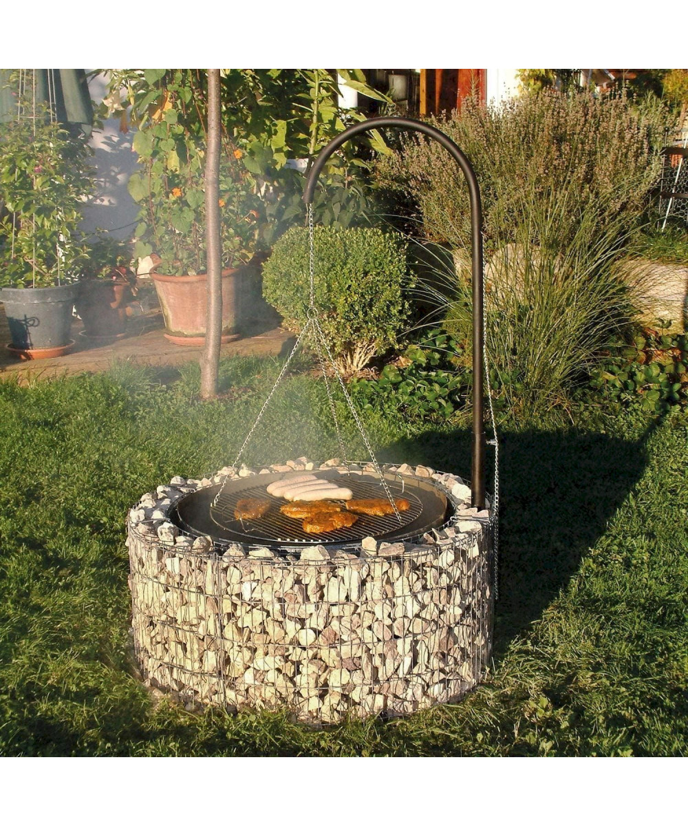 bellissa Feuer- und Grillstelle aus Gabionen - 95580 inkl. Rost, Galgen und Ketten