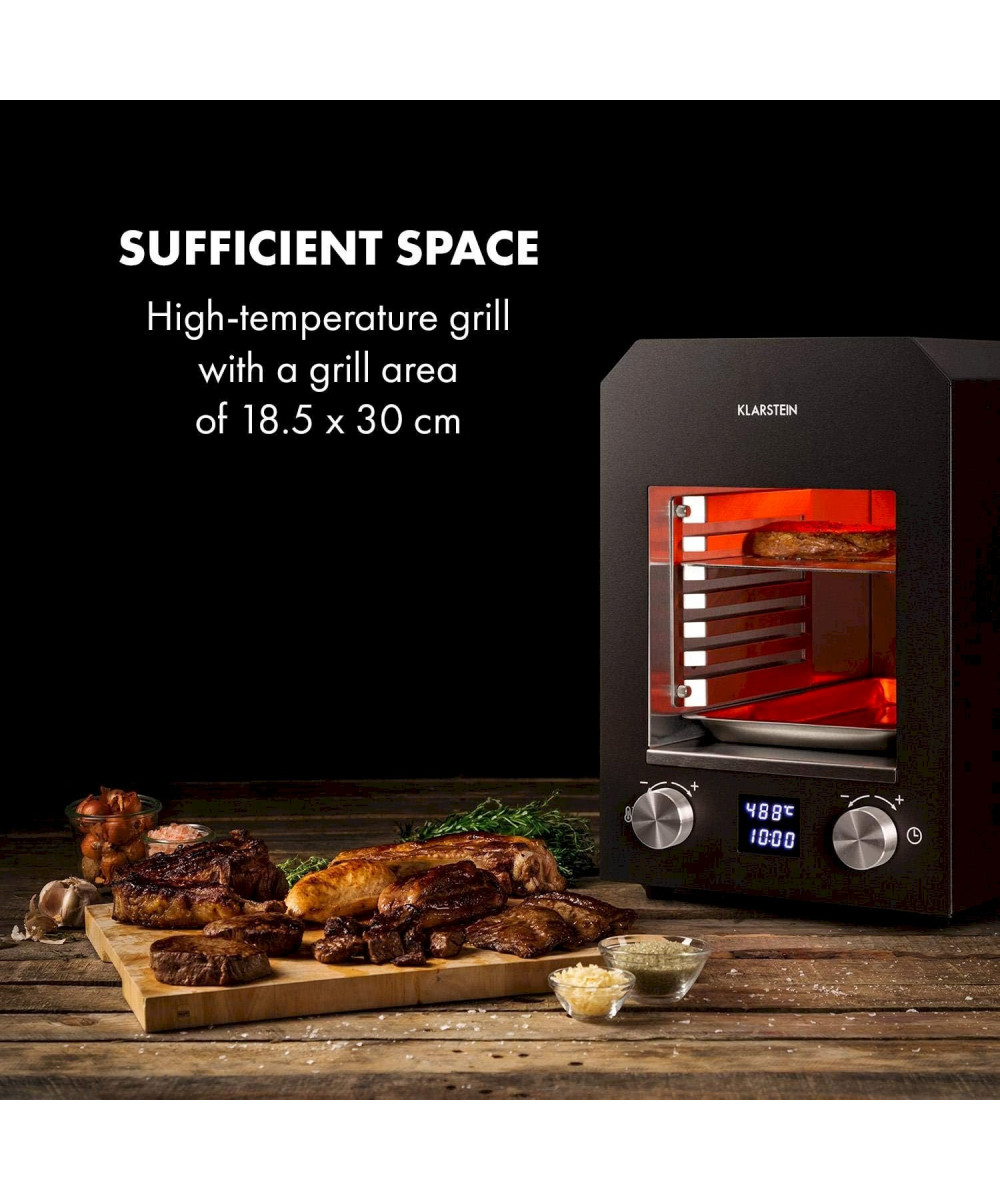 Der Klarstein Hannibal Hochtemperatugrill bereichert durch seine zahlreichen Funktionen und sein hochwertiges Gehäuse aus schwarzem Edelstahl jede Küche mit einem besonderen Glanz.