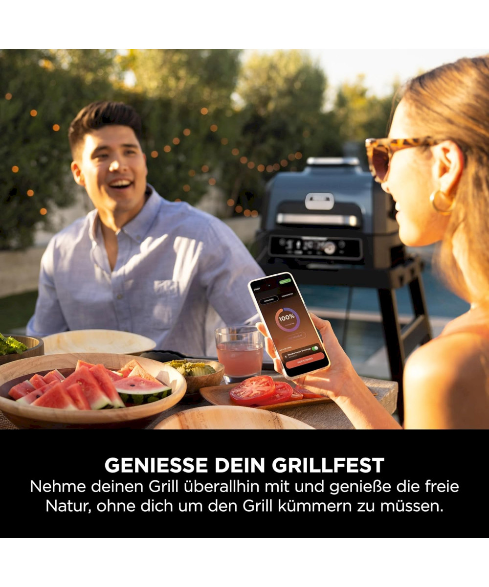 Mit dem Ninja Woodfire Pro Connect XL Elektrischen Grill & Smoker kannst du das Grillen und den Garvorgang direkt von deinem Handy aus steuern. So hast du die Freiheit, dich zurückzulehnen und wertvolle Zeit mit Freunden und Familie zu verbringen. Kein Rätselraten mehr. Totale Kochkontrolle in deiner Hand.
