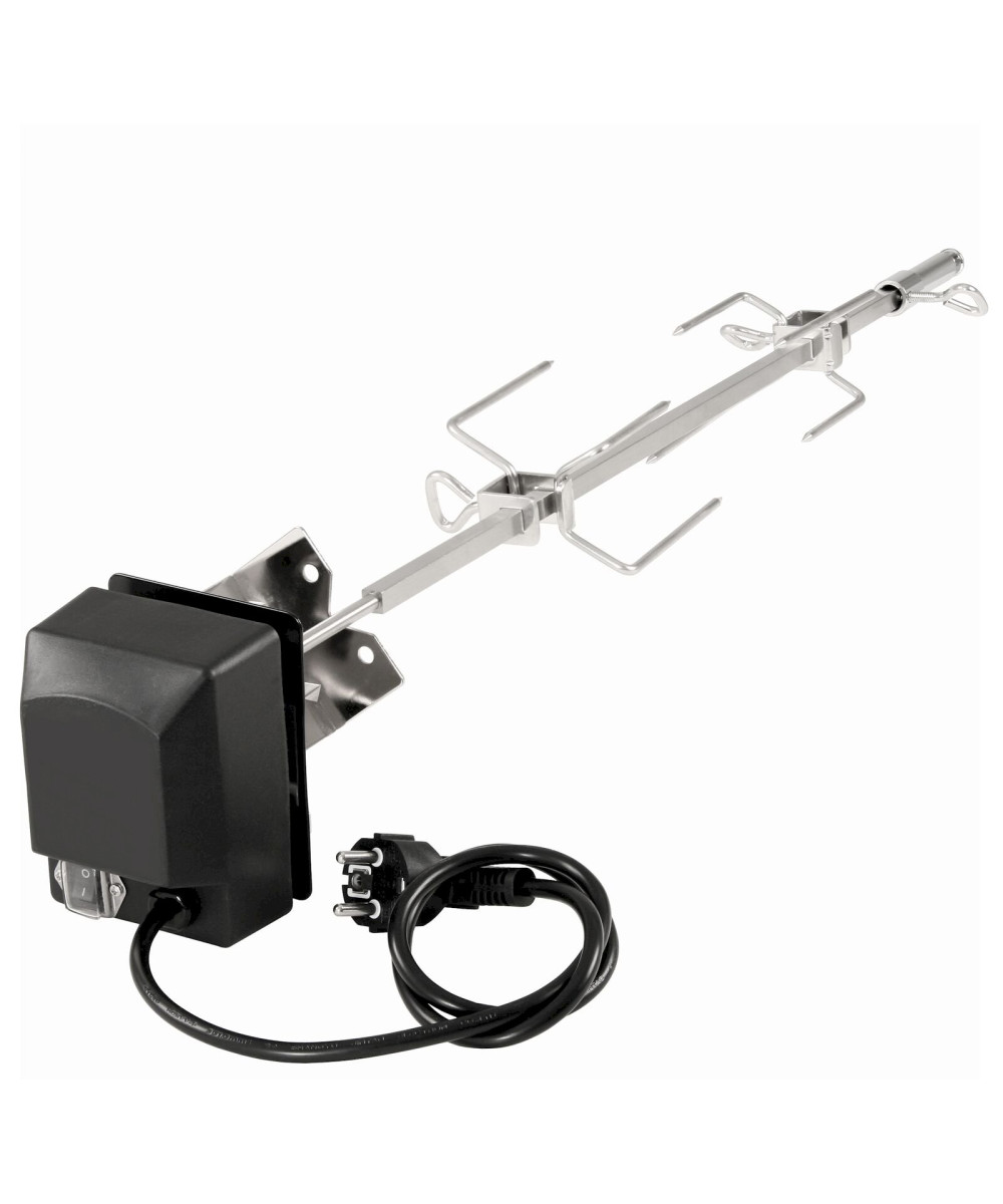 Der 70-cm-lange, massive Grillspieß hat einen Durchmesser von 10 mm ist aus Edelstahl gefertigt. Die beiden Edelstahl-Fleischnadeln halten das gleichmäßig verteilte Grillgut (bis max. 10 kg) stabil in Position. Angetrieben wird der Drehspieß durch den mitgelieferten Motor. Bei 2-3 Umdrehungen pro Minute werden Ihr Braten, ganze Hähnchen oder andere große Fleischstücke gleichmäßig knusprig gegrillt und bleiben saftig.