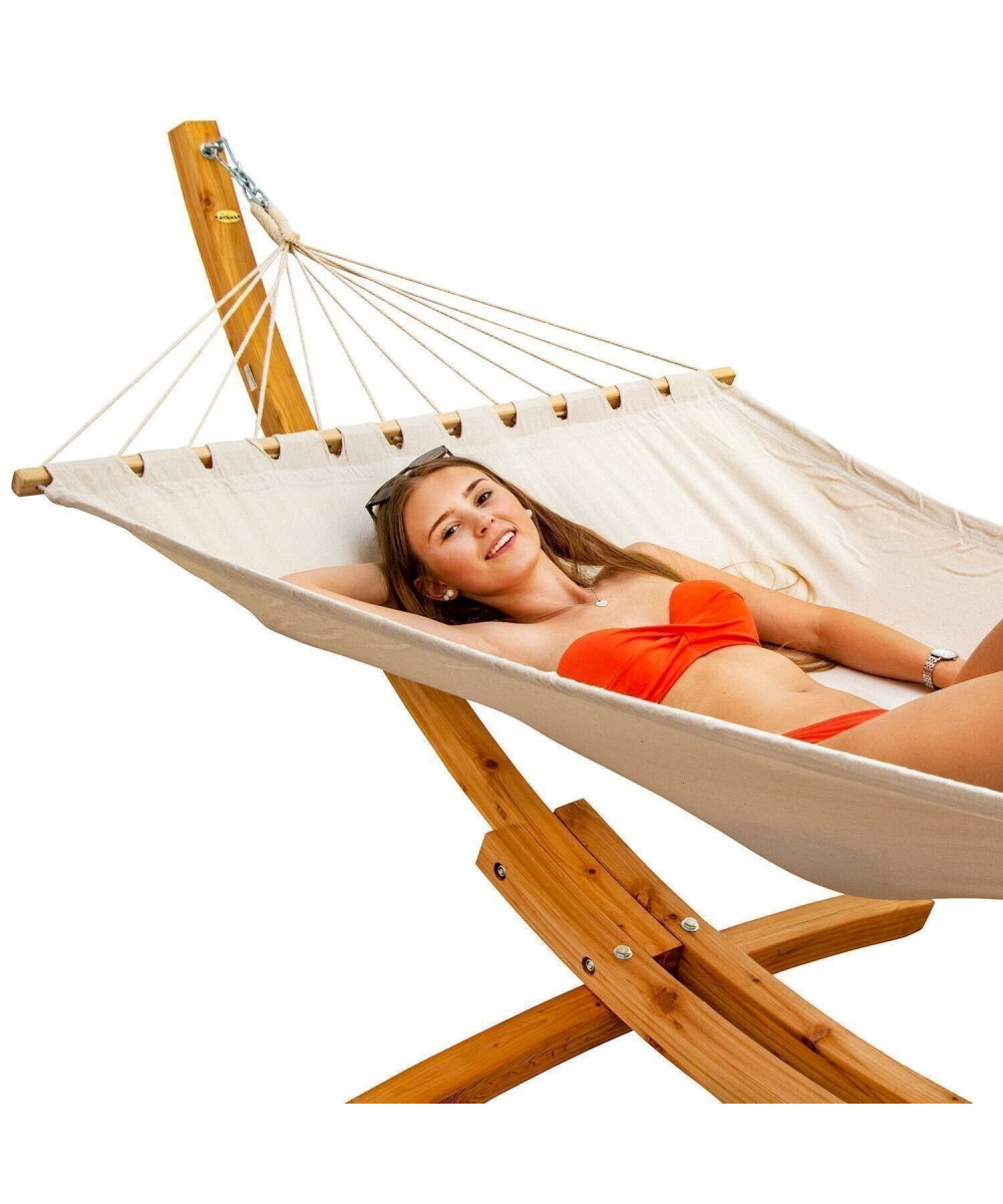 XXL Hängematte mit Gestell Holz Hängemattengestell Sonnenliege Stabhängematte