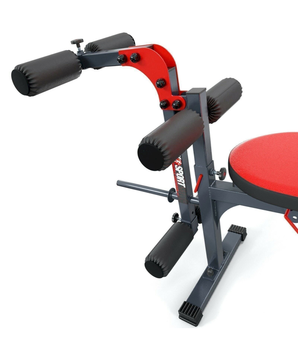 Mit diesem Trainingsgerät erhältst du eine Kombination aus einer hochwertigen, mehrfach verstellbaren Trainingsbank und einem Beincurler. Sorge für perfekt definierte Muskeln und trainiere den gesamten Body ab jetzt regelmäßig zuhause. - Vielseitig einsetzbares Hantelbank Set