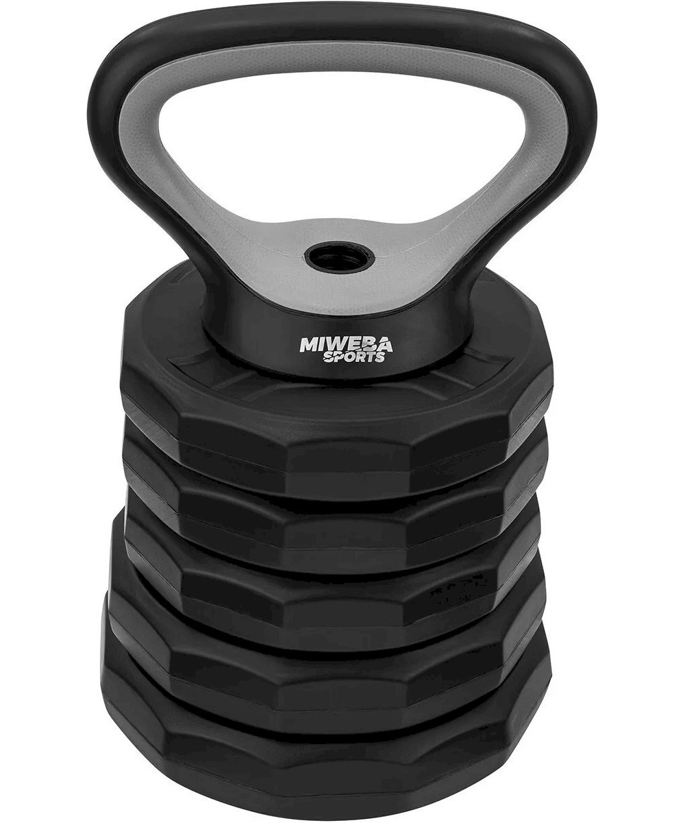 Miweba Sports 6in1-Hantelset, Kurzhanteln-Langhantel-Kettlebell, 25 kg, verstellbar, Sternverschluss