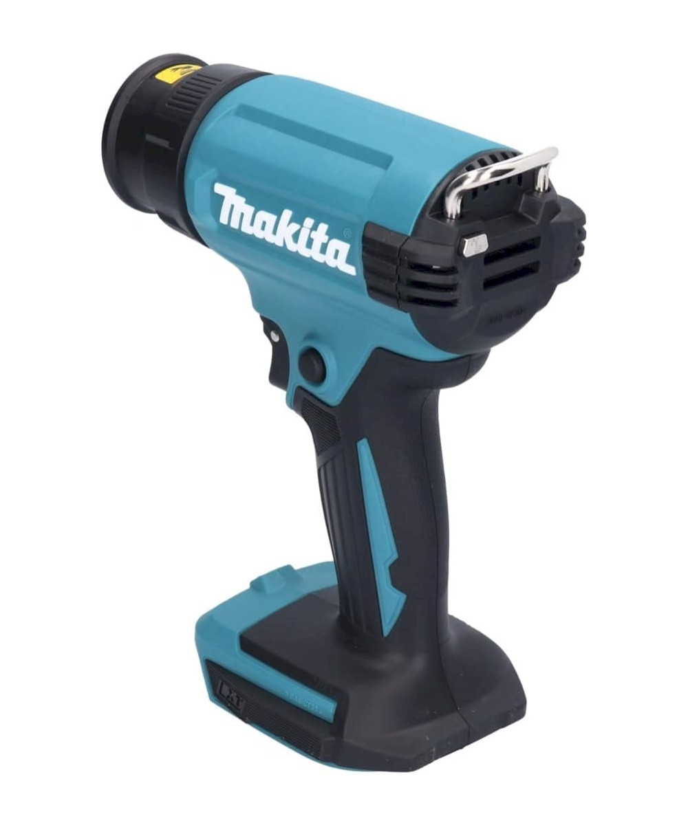 Die DHG180 erreicht eine Maximaltemperatur von bis zu 550 °C. Verschiedene Düsen unterstützen eine Vielzahl an Anwendungen. Die Schnellwechselfunktion für die Düsen minimiert die Gefahr von Verbrennungen. Die Laufzeit mit einem vollen 6,0 Ah Akku beträgt bis zu 20 Minuten.