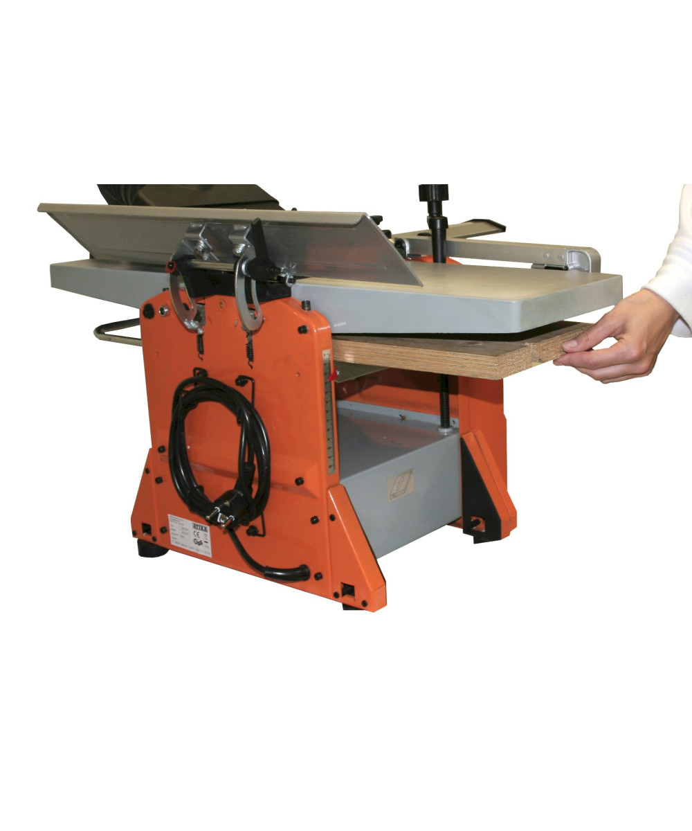- Mit Kabelaufwicklung und ausziehbarer Werkstückauflage beim Dickenhobeln.