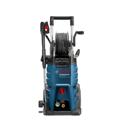 Hochdruckreiniger GHP 5-75 X. Kraftvoll und vielseitig: Kompakter und langlebiger Hochdruckreiniger mit Messingpumpe und praktischer Schlauchtrommel. Hohe Reinigungsleistung: Die Messingpumpe mit Edelstahlkolben liefert die ideale Kombination aus hoher Fördermenge und hohem Druck für hervorragende Reinigungsleistung. Langlebig: Stahlarmierter Gummischlauch und große Gummiräder für den harten Baustelleneinsatz. Langlebige Wasseranschlüsse aus Messing. Praktisch: Metall-Teleskopgriff für hohe Mobilität. Komfortable und platz sparende Schlauchtrommel. Vielseitig: Sowohl stehend als auch liegend einsetzbar. Flexibel: Dank stufenloser Druckverstellung immer der optimale Wasserdruck für die jeweilige Arbeit. Selbstansaugend: Für das Arbeiten mit Wasser aus externen Wasserquellen. Automatischer Motor- und Pumpenstopp: Reduziert den Verbrauch von Strom und Wasser. Bosch-Pistole. Rotordüse. Verstellbare 3-in-1-Lanze (Edelstahl)