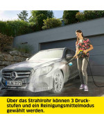 Für noch mehr Kontrolle in vielen Reinigungssituationen und bei unterschiedlichen Reinigungsobjekten kann der Nutzer vom Anwendungsberater via Kärcher Home & Garden App mit Tipps und Tricks unterstützt werden. Der Anwendungsberater beschreibt die optimale Druckstufe für das ausgewählte Reinigungsobjekt. Durch Drehen am Vario Power-Strahlrohr kann der Druck dann ganz einfach manuell eingestellt werden. Darüber hinaus bietet die App weitere nützliche Funktionen wie eine Aufbauanleitung, Wartungs- und Pflegehinweise sowie das Kärcher Serviceportal. Weiter überzeugt das Gerät mit der G 160 Q Power Control-Pistole sowie dem Dreckfräser. Weitere Ausstattungsdetails sind die Schlauchtrommel für eine komfortable Handhabung, das Plug ’n’ Clean-Reinigungsmittelsystem für den schnellen und sauberen Wechsel des Reinigungsmittels, der hochwertige Aluminium-Teleskopgriff für einen angenehmen Transport und eine platzsparende Verstauung, das Quick Connect-System für ein müheloses und zeitsparendes Ein- und Ausklicken des Hochdruckschlauchs in das Gerät und die Pistole sowie die Parkposition für jederzeit griffbereites Zubehör.