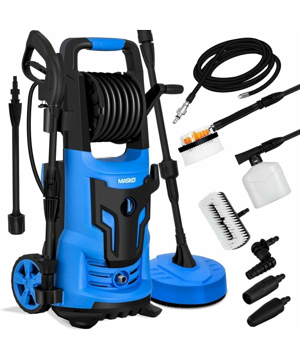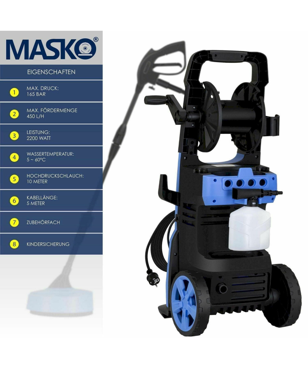 MASKO® Hochdruckreiniger Elektro 2200W 165bar Schlauchtrommel 10m Schlauch Set - BLAU