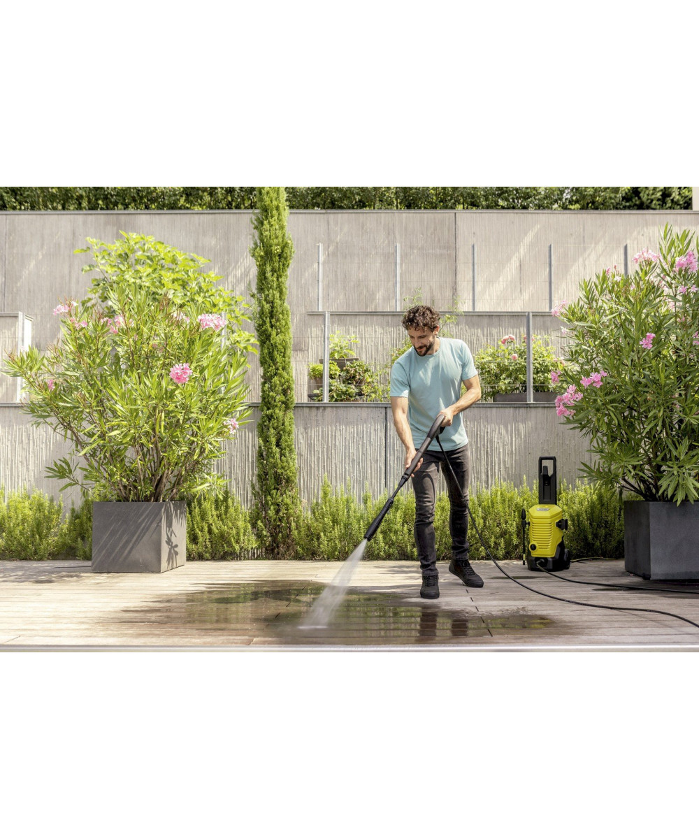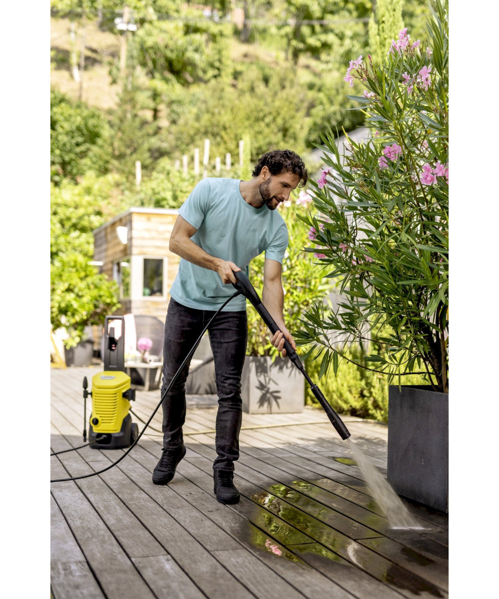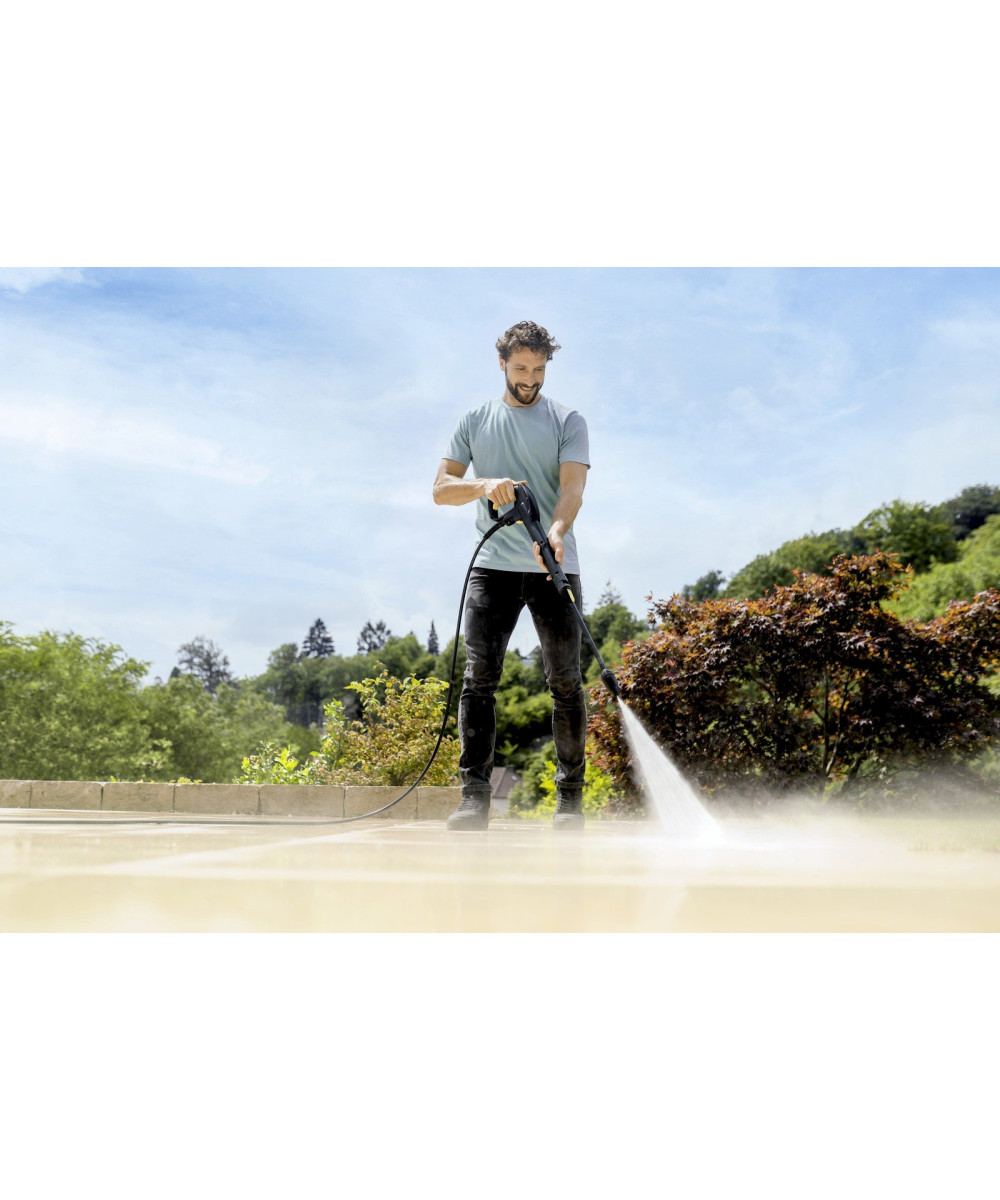 Der K 4 WCM überzeugt mit einem leistungsstarken wassergekühlten Motor, der sich durch eine lange Lebensdauer auszeichnet. Der Hochdruckreiniger mit 6 Meter langem Hochdruckschlauch wurde für gelegentliche Einsätze und mittelstarken Schmutz gebaut. Dank Vario Power-Strahlrohr (VPS) und Dreckfräser lassen sich Terrassen, Gartenmöbel und Autos bedarfsgerecht reinigen. Der Wasserdruck kann am VPS durch einfaches Drehen exakt auf das jeweilige Reinigungsobjekt eingestellt werden. Und der Dreckfräser mit rotierendem Punktstrahl sorgt auch bei hartnäckigem Schmutz für kompromisslosen Reinigungserfolg. Alle enthaltenen Zubehöre finden direkt am Gerät ihren Platz. Ein eingebauter Wasserfilter schützt die Pumpe zuverlässig vor Schmutzpartikeln.