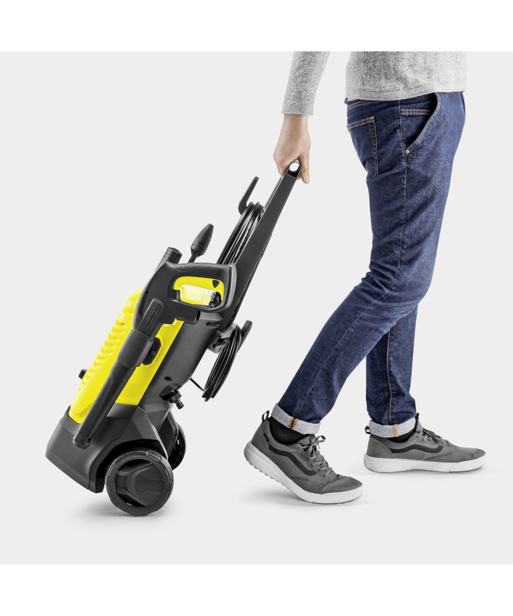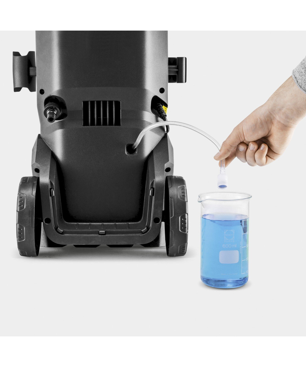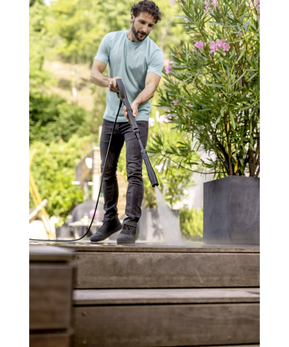 Der K 4 WCM überzeugt mit einem leistungsstarken wassergekühlten Motor, der sich durch eine lange Lebensdauer auszeichnet. Der Hochdruckreiniger mit 6 Meter langem Hochdruckschlauch wurde für gelegentliche Einsätze und mittelstarken Schmutz gebaut. Dank Vario Power-Strahlrohr (VPS) und Dreckfräser lassen sich Terrassen, Gartenmöbel und Autos bedarfsgerecht reinigen. Der Wasserdruck kann am VPS durch einfaches Drehen exakt auf das jeweilige Reinigungsobjekt eingestellt werden. Und der Dreckfräser mit rotierendem Punktstrahl sorgt auch bei hartnäckigem Schmutz für kompromisslosen Reinigungserfolg. Alle enthaltenen Zubehöre finden direkt am Gerät ihren Platz. Ein eingebauter Wasserfilter schützt die Pumpe zuverlässig vor Schmutzpartikeln.