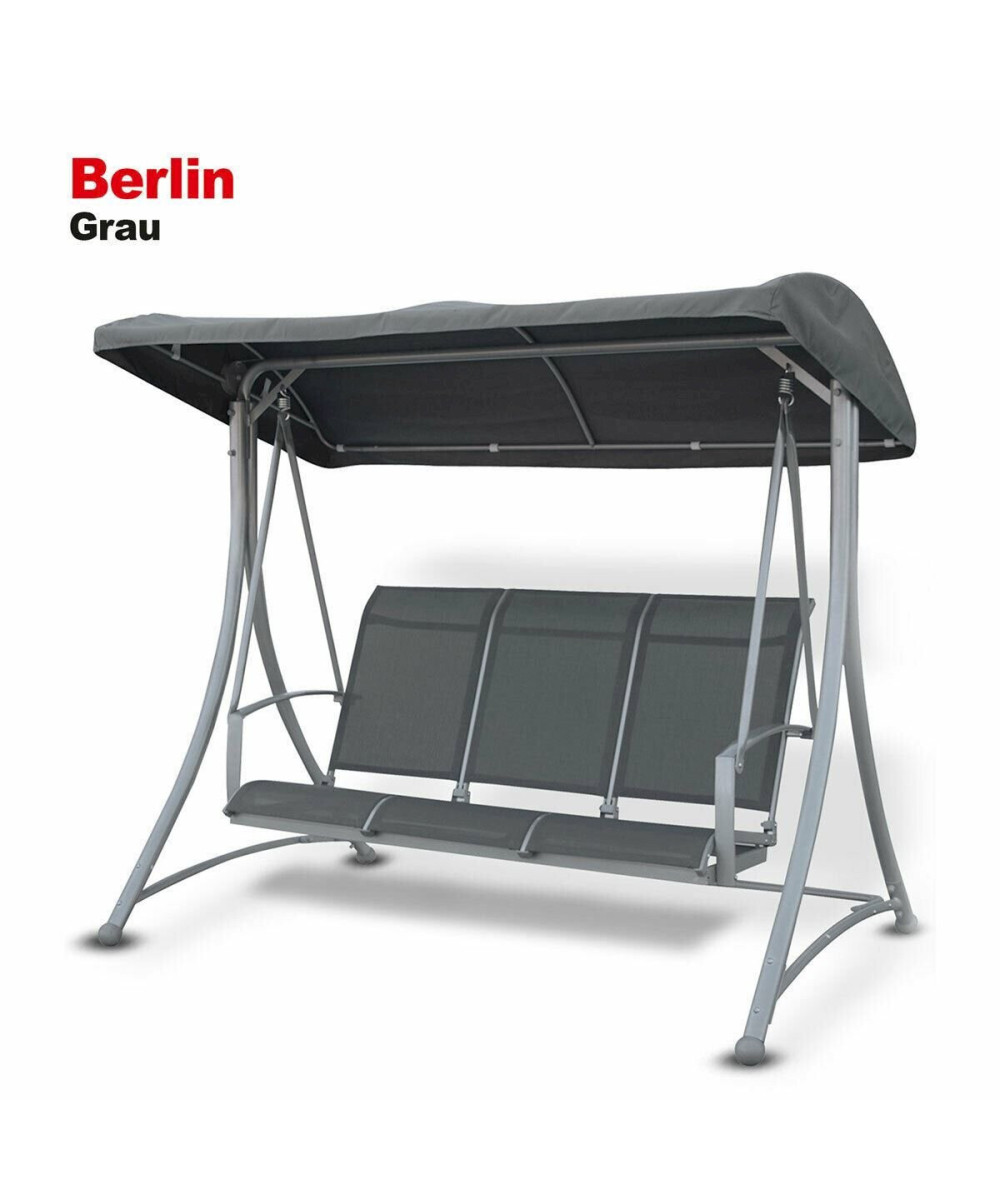 Das schlichte, elegant geformte Gestell aus pulverbeschichtetem Stahl ist stabil und garantiert eine hohe Standfestigkeit. Die drei Sitzplätze der Hollywoodschaukel sind mit einem schicken und pflegeleichten Textilstoff bezogen, der farblich optimal zum Dach passt. Die textile Kunstfaser ist mit PVC ummantelt und ein neu entwickeltes Material in der Produktion von Gartenmöbeln. Das flexible Gewebe ist sehr robust und reißfest, luftdurchlässig und sorgt für ein angenehmes Sitzgefühl und für einen hohen Sitzkomfort. Die textilen Kunstfasern sind mit einer Schutzschicht überzogen, so dass UV-Strahlen die Hollywoodschaukel nicht ausbleichen.