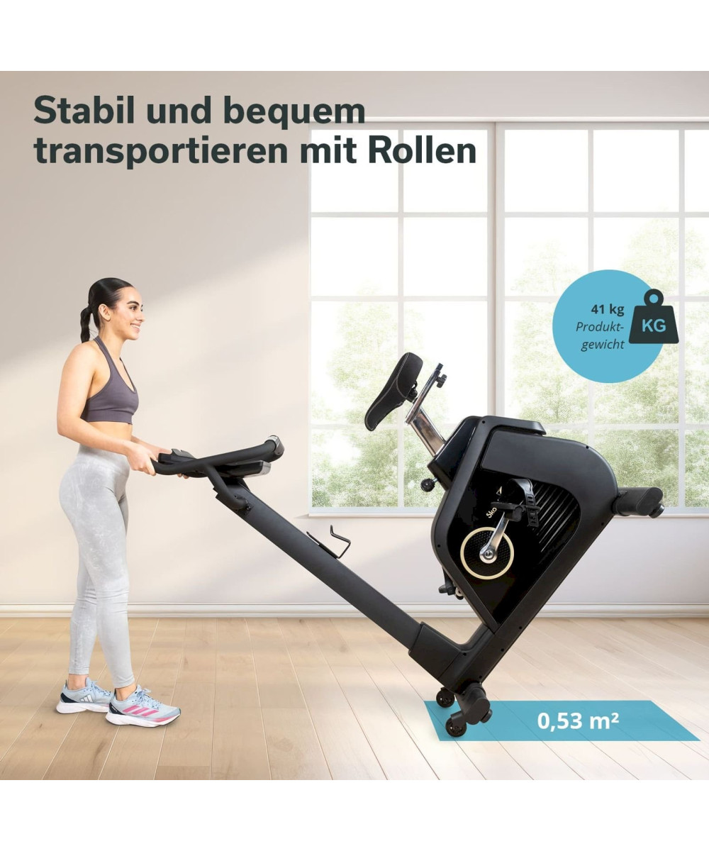 - 14 kg Schwungmassensystem, tiefer Einstieg, integrierte Handpulssensoren, Bluetooth