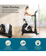 Der tiefe Einstieg für ein müheloses Auf- und Absteigen, das Schwungmassensystem von 14 kg und das wartungsarme, motorisierte Magnetbremssystem sorgen für ein komfortables Fahrerlebnis mit einem natürlichen und leisen Bewegungsablauf. Die 32 elektrisch einstellbaren Widerstandsstufen unterstützen das zielgerichtete Training.