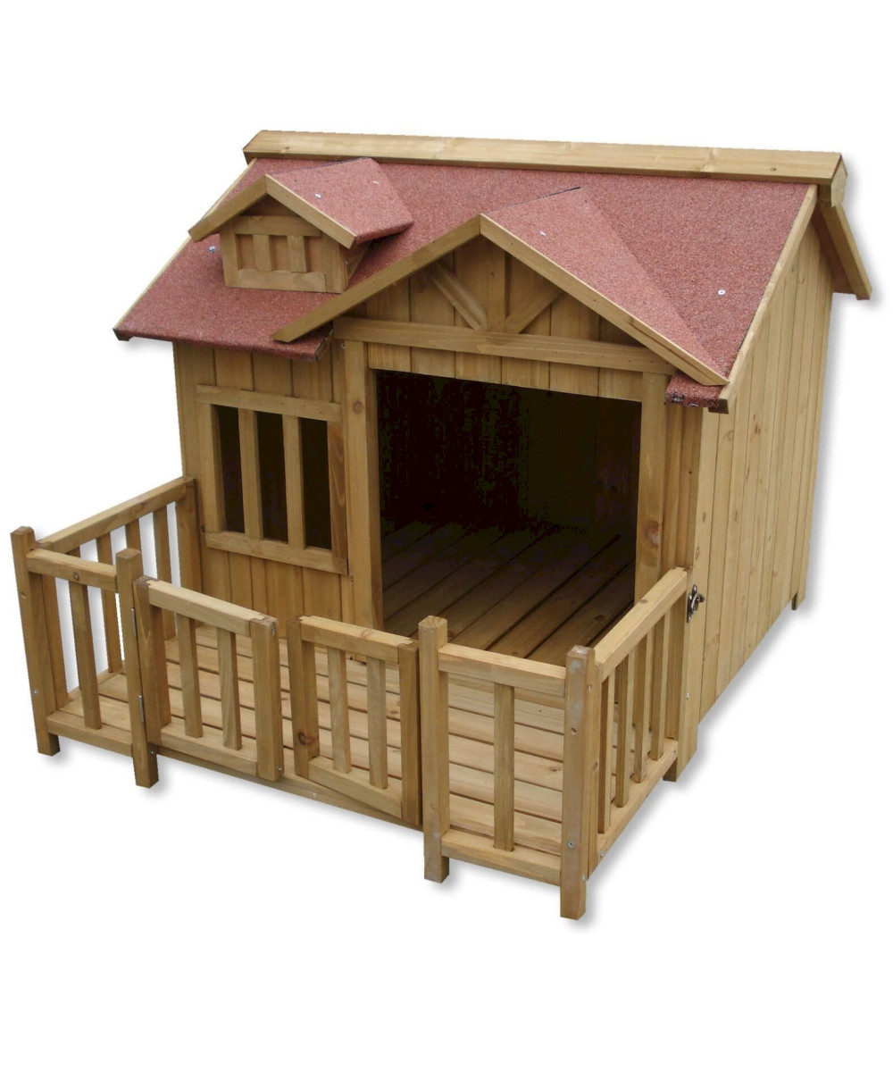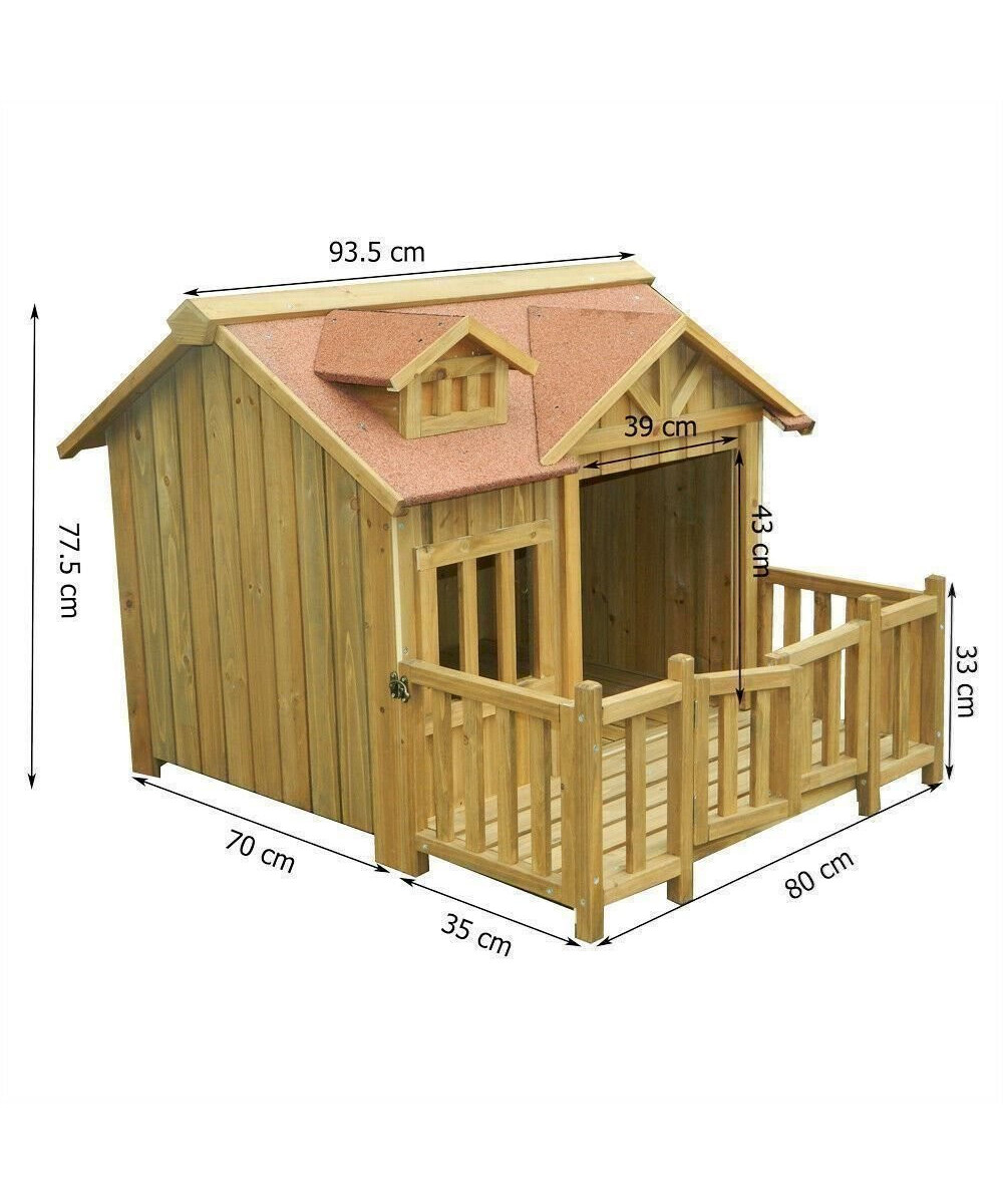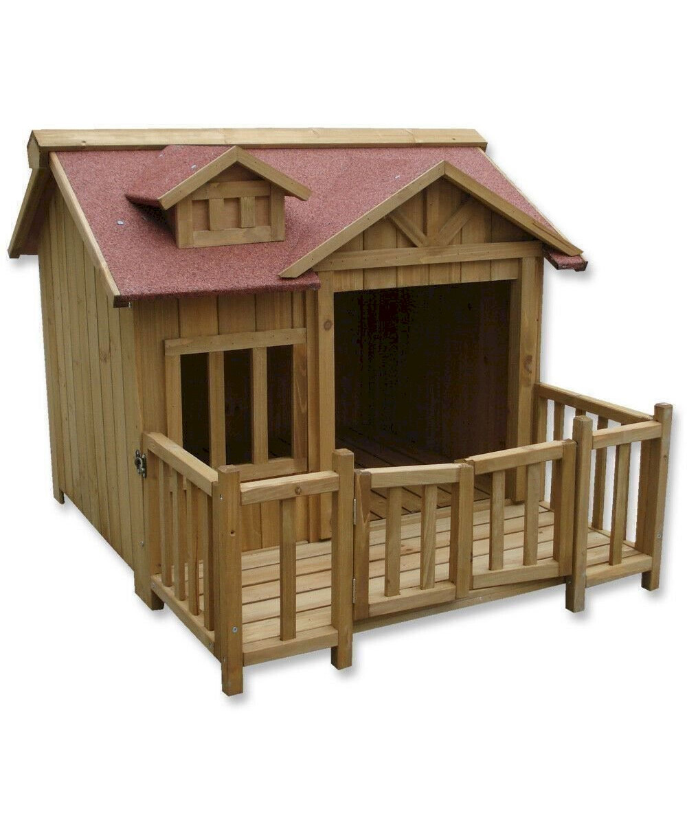 Wiltec 50030 Luxus XL Hundehütte Hundehaus Holz Balkon Garten Terrasse Hund Outdoor