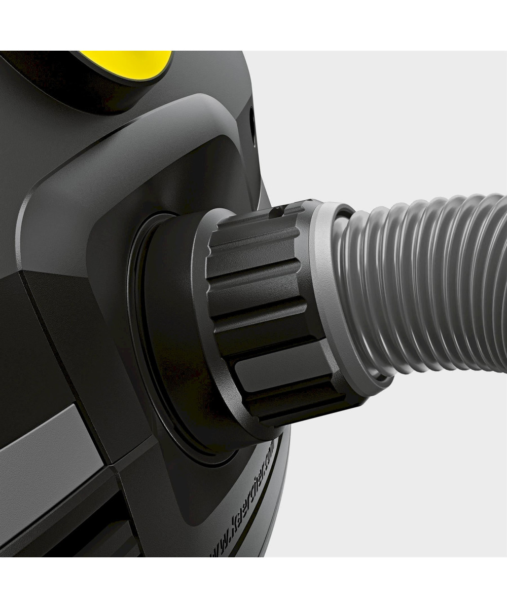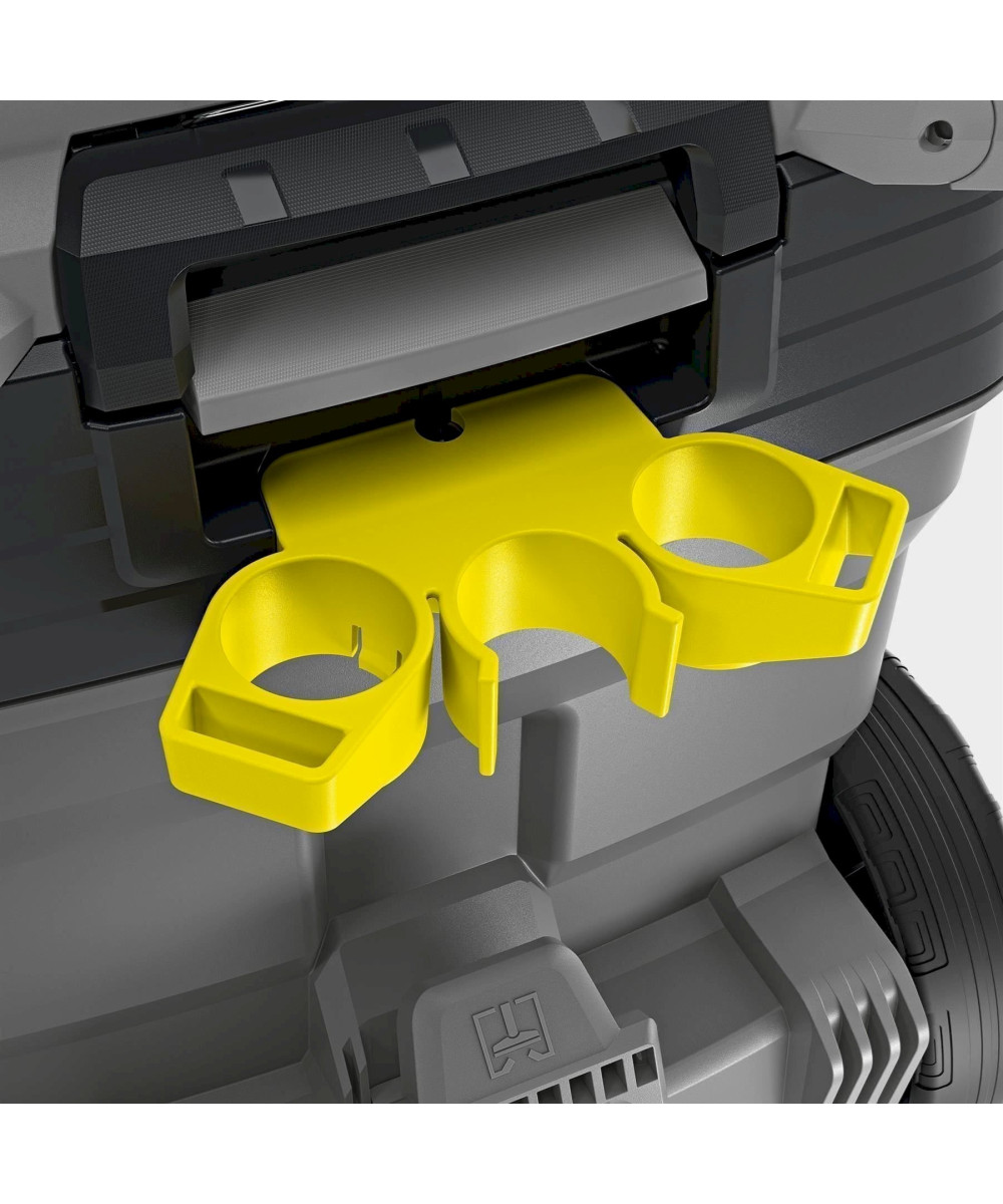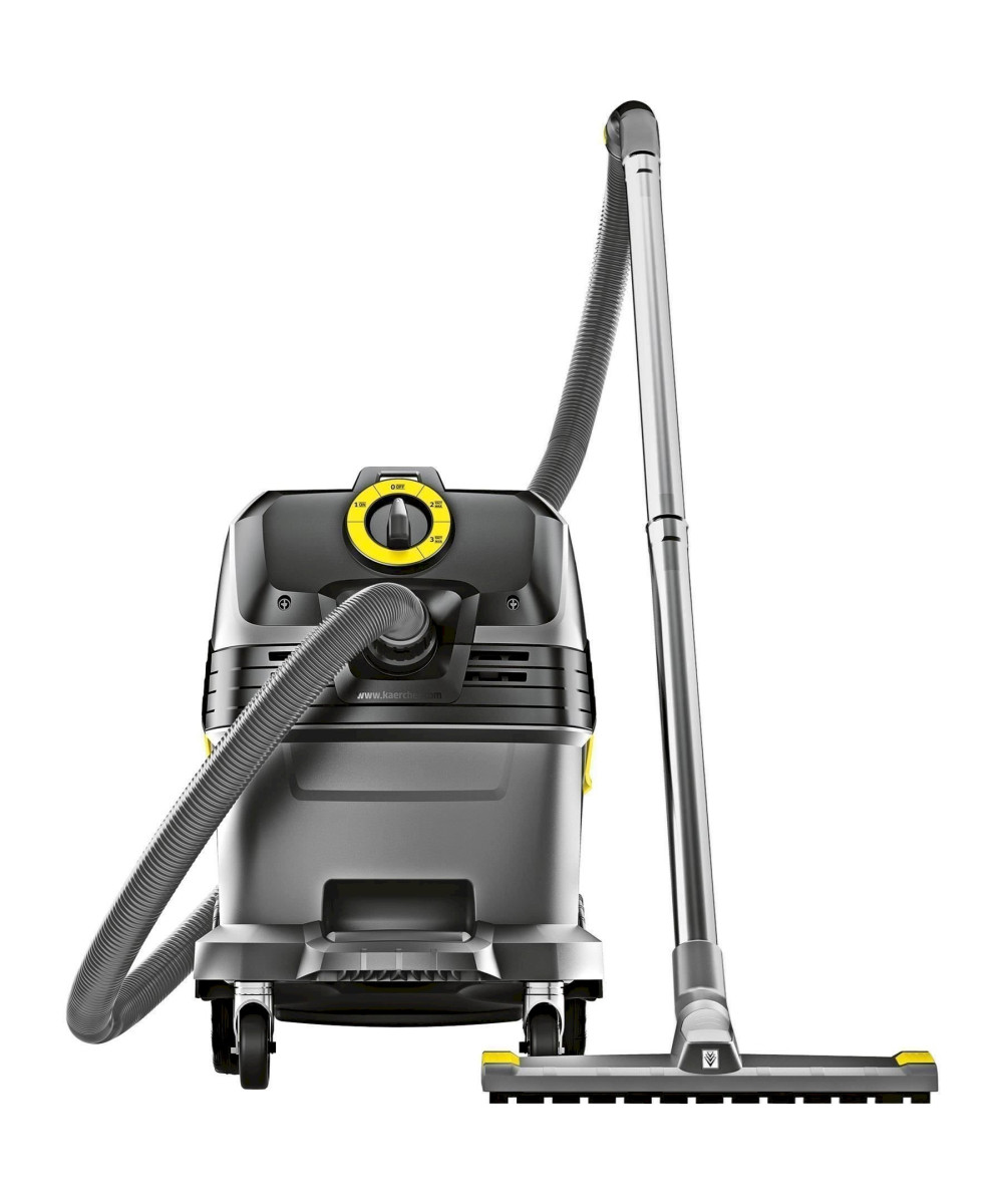Zur effektiven und schnellen Reinigung von Maschinen, Fahrzeugen, Werkstätten und Baustellen: Der Kärcher Nass- und Trockensauger NT 30/1 Tact ist ein Universal-Gerät für professionelle Anwender aus den unterschiedlichsten Branchen. Der kompakte Allessauger überzeugt dank dem automatischen Filterabreinigungssystem Tact und dem feuchtigkeitsresistenten PES-Flachfaltenfilter bei der staubfreien Beseitigung großer Mengen Feinstaub über lange Arbeitsintervalle hinweg. Schmutz und Flüssigkeiten werden zuverlässig in einem robusten 30 Liter großen Behälter gesammelt, der über einen Bumper und stabile Metalllenkrollen verfügt. Das einfache Handling und die durch den neuen, zentralen Drehschalter kinderleichte Bedienung des Geräts, erleichtern die Arbeit enorm. Das Gerät ist komplett mit neu entwickeltem und stark verbessertem Zubehör ausgestattet, das sich in der integrierten Saugschlauch- und Zubehöraufnahme bequem verstauen lässt. Auf dem flachen Gerätekopf können Werkzeuge und Boxen dank gummierten Flächen und Verzurrmöglichkeiten verrutschsicher abgestellt oder sogar fixiert werden.
