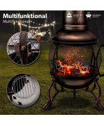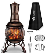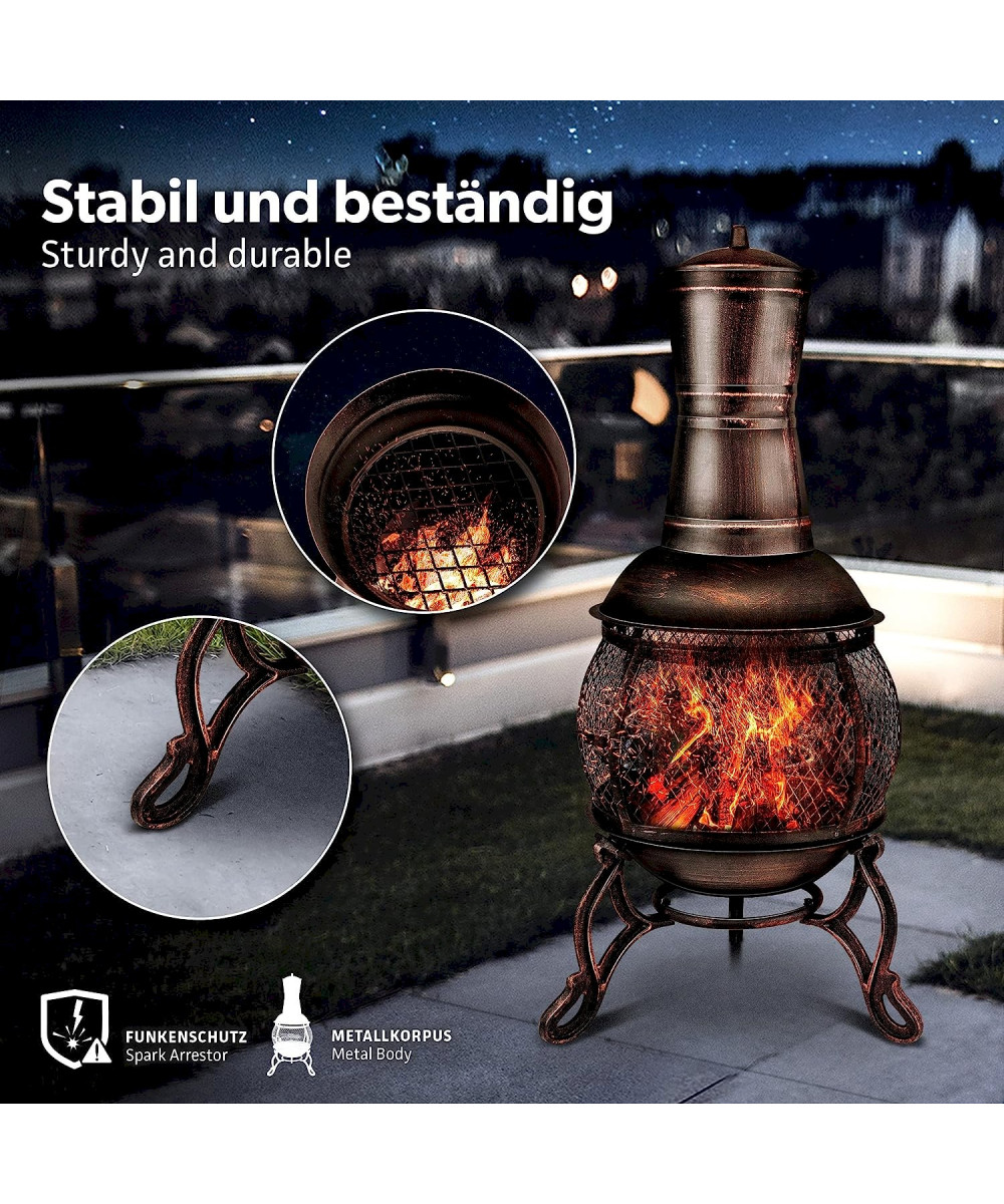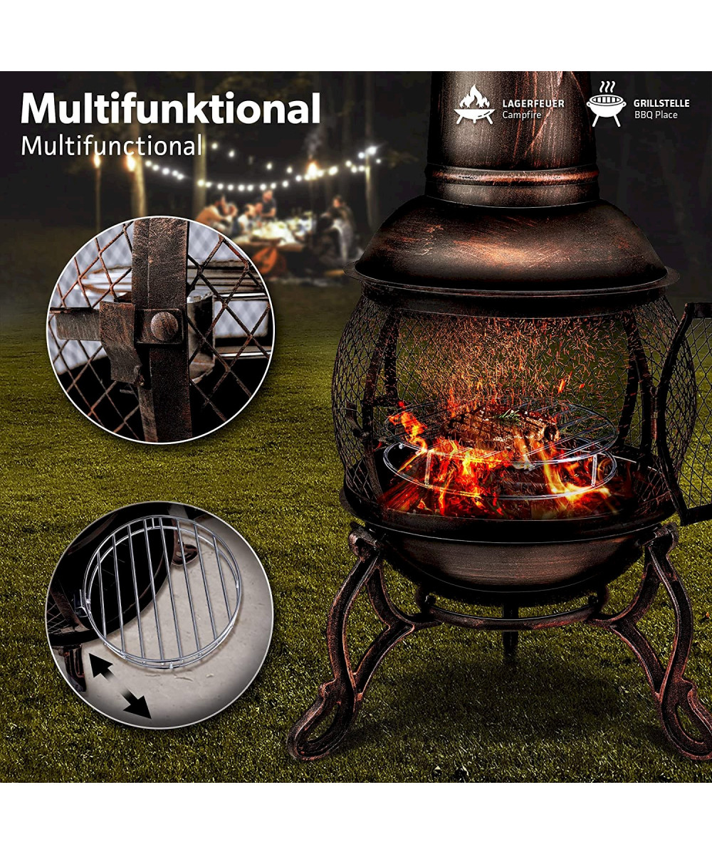 Terrassenofen mit Funkenschutz, Grillfunktion und Zubehör 105cm bronze