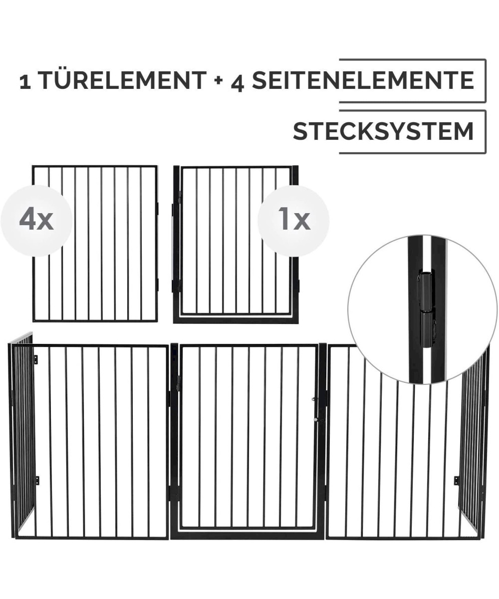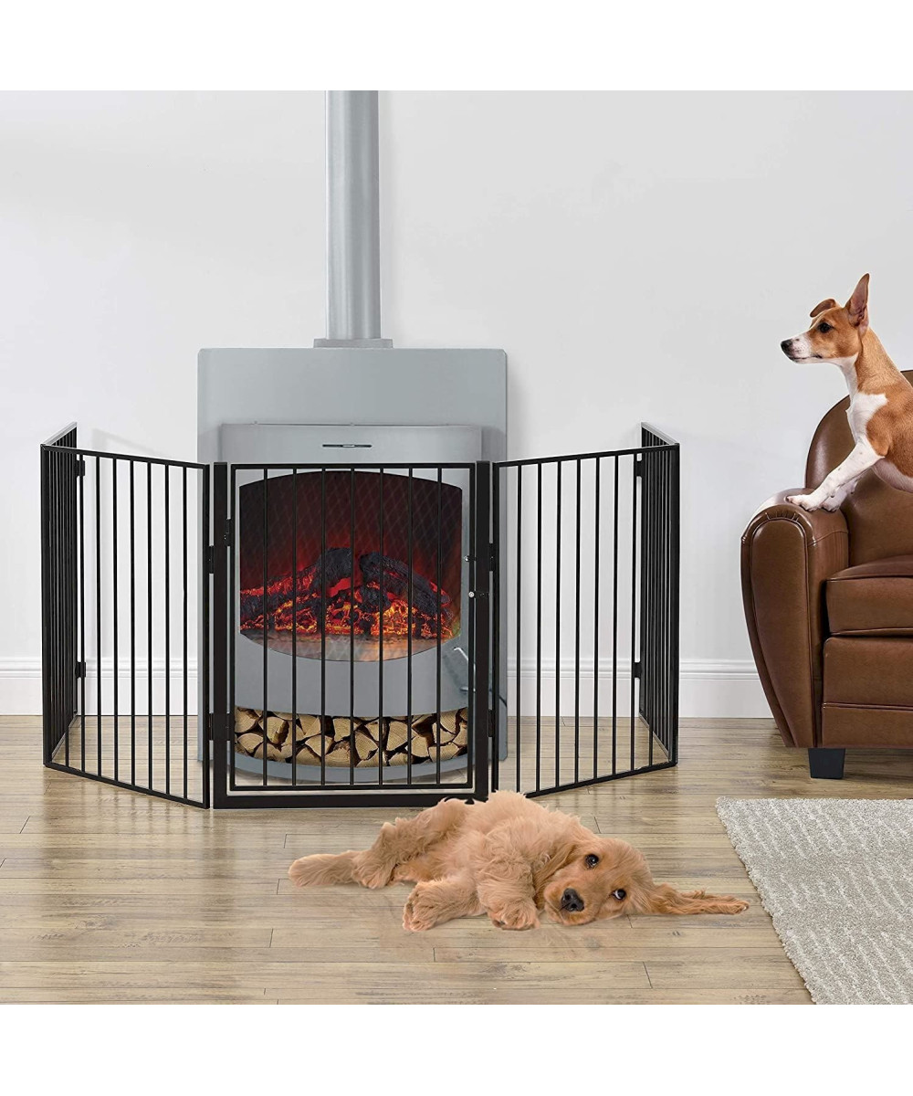 Mit dem XXL Kaminschutzgitter aus Metall schaffen Sie mehr Sicherheit in der Nähe von Kaminen oder Öfen. Das 5-teilige Schutzgitter hält Tiere zuverlässig fern von der heißen Feuerquelle und schützt sie schon vor gefährlichen Verletzungen. Sie können sich auch mal getrost im Nebenraum aufhalten, während Ihr Haustier unbeaufsichtigt vor dem brennenden Ofen oder Kamin im Wohnzimmer spielt.