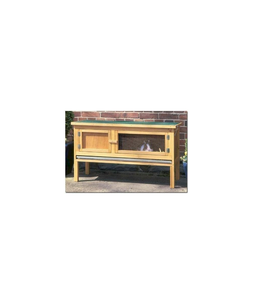 Der Hasenstall wurde sorgfältig aus massivem, imprägniertem Kiefernholz gefertigt. Das Dach ist mit wasserfestem Teerpapier bedeckt und kann für Reinigungszwecke problemlos geöffnet werden. Der ausziehbare Boden ist feuerverzinkt und verfügt über eine integrierte Futterrinne, um die Versorgung Ihres Nagers zu erleichtern.