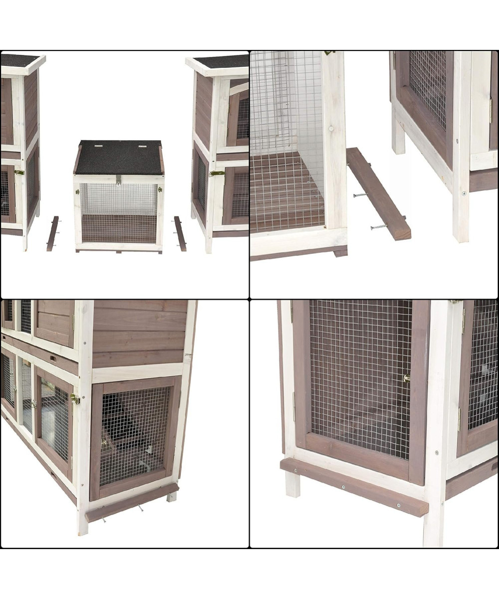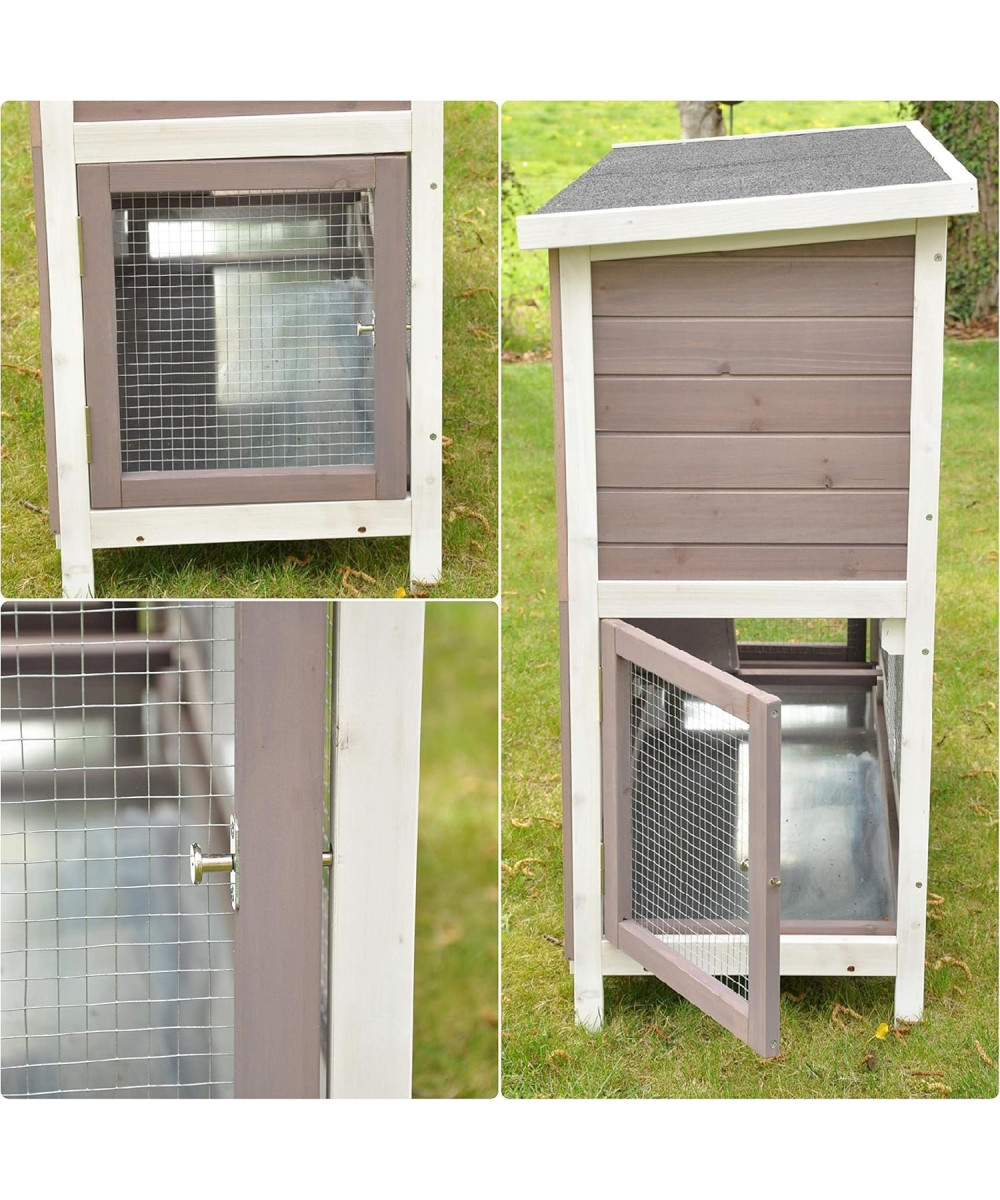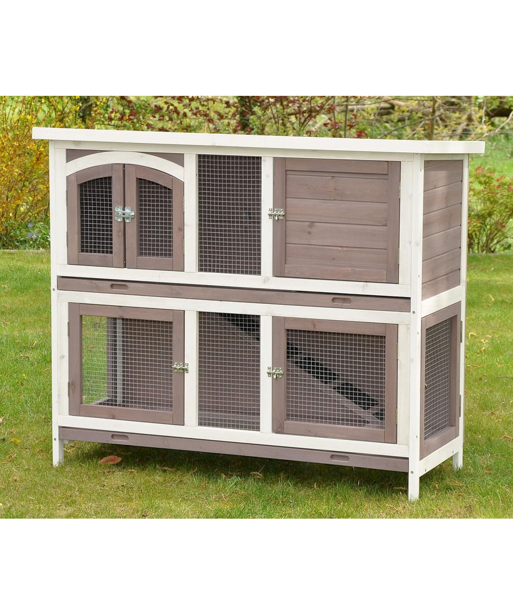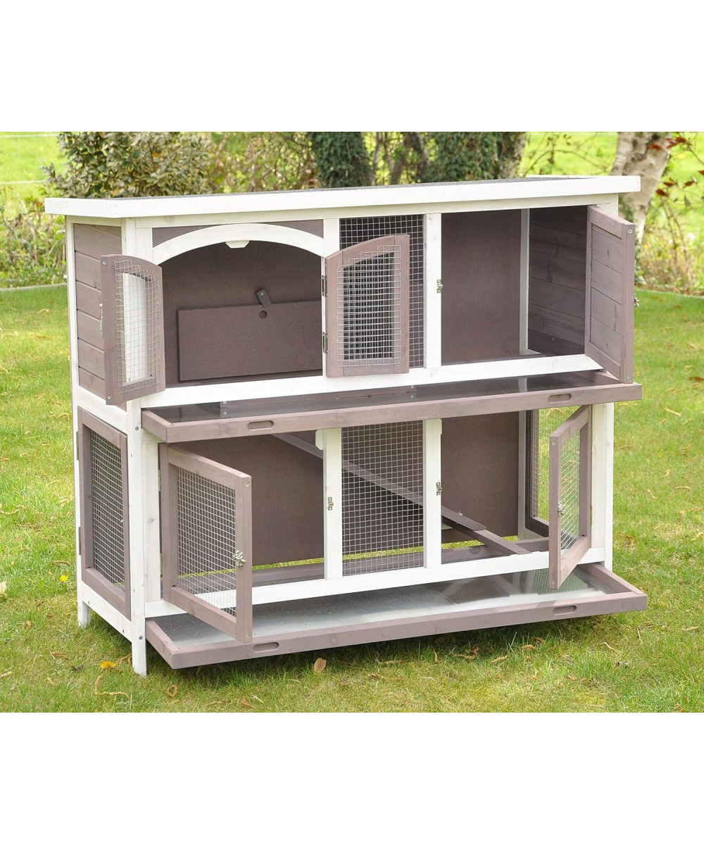 Die Kaninchenställe Balu und Frederik bestehen aus hochwertigem und imprägniertem Nadelholz, ist wetterfest und regentauglich. Mit zwei Kot-Auszugswannen aus Kunststoff für eine schnelle und einfache Reinigung. Doppelstöckig bietet dieser Stall eine geräumige Unterkunft für den Nager. Alle Bereiche des Stalles sind zudem leicht durch die 6 Türen erreichbar.