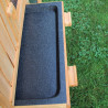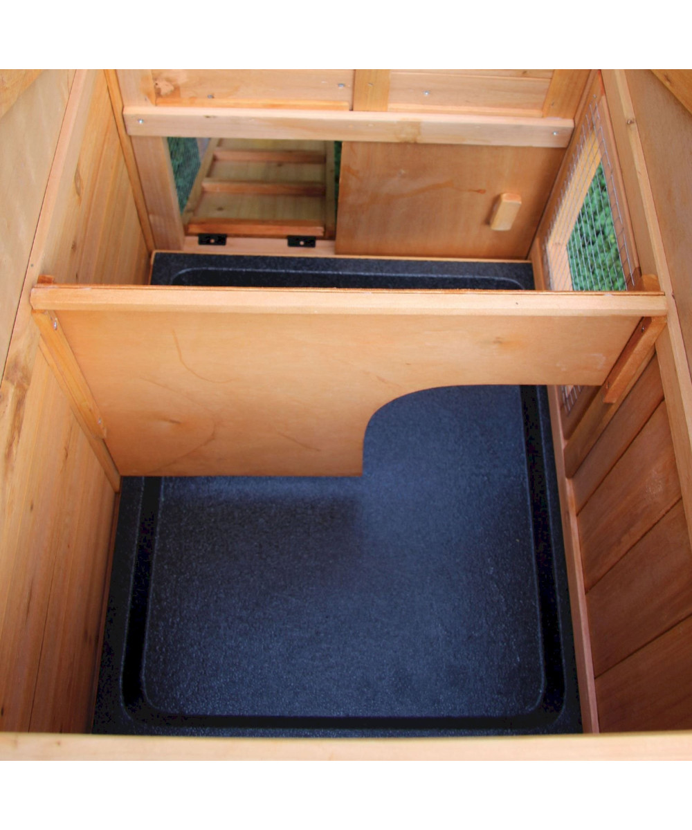 Der Stall ist aus Kiefernholz gefertigt und gegen Feuchtigkeit imprägniert. Das grüne Dach schützt den Stall vor Nässe. Der Draht ist verzinkt und somit rostfrei. Der Hasenstall Picasso und auch beide Ausläufe sind jeweils mit Türen versehen. Die Reinigung ist dank der hochwertigen Schublade mit Kunststoffwanne sehr einfach. Über die Treppe gelangen Ihre Kaninchen in die 1. Etage und so in die Ruhezone. Der Hauptteil des Hasenstalles kann seitlich mit einer Schiebetür geschlossen werden.