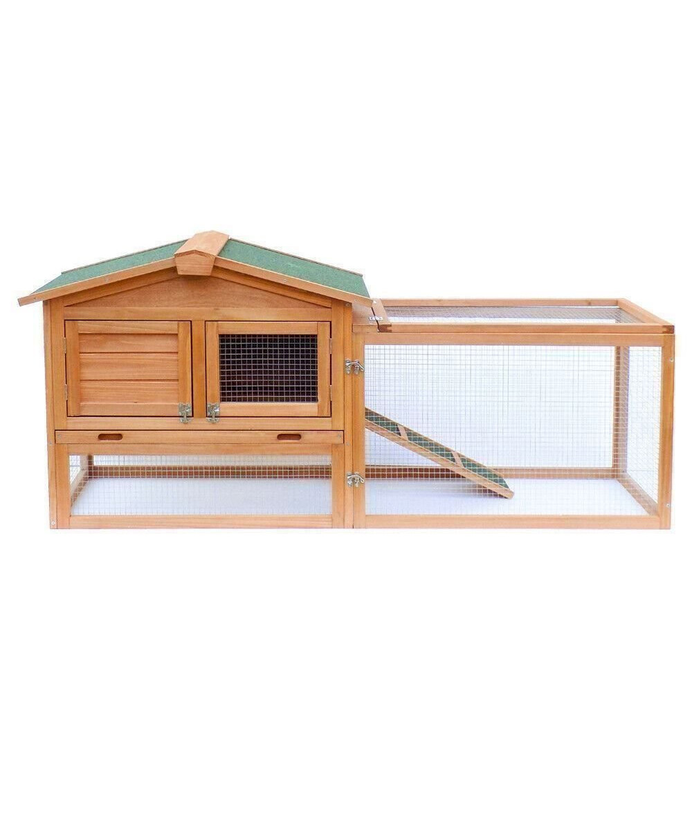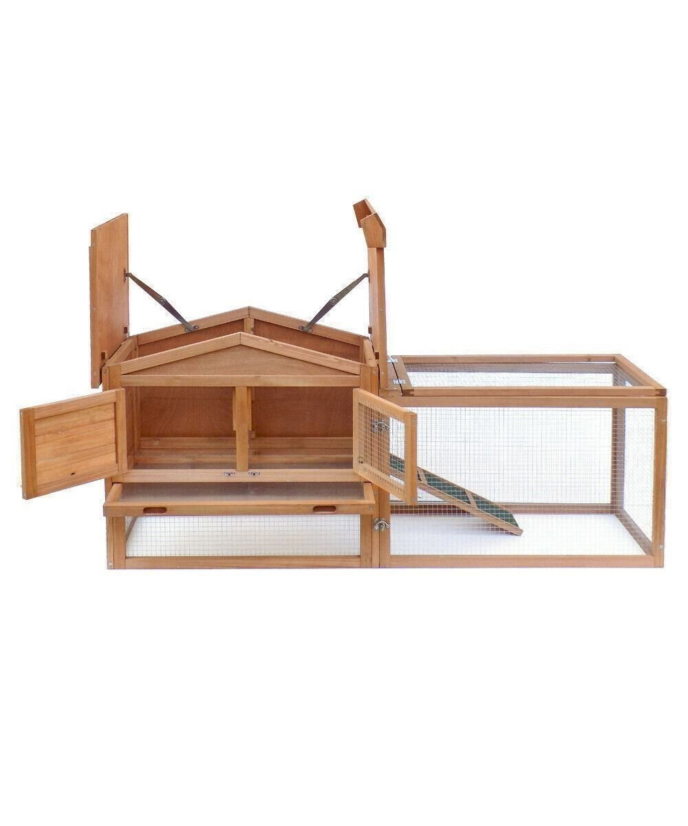 WilTec 51070 XXL Hasenstall Kaninchenkäfig Freilaufgehege erhöhter Unterschlupf Fichtenholz