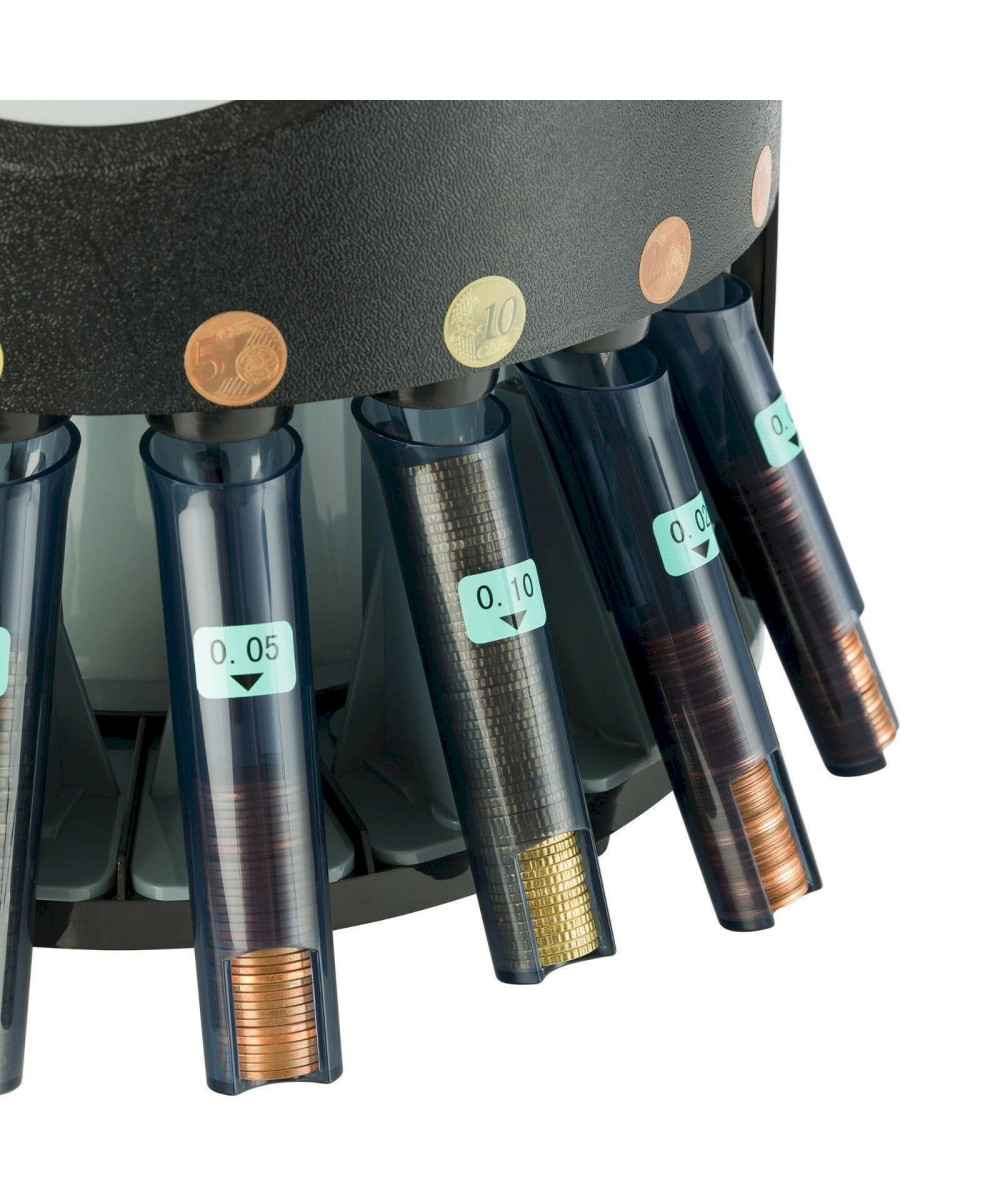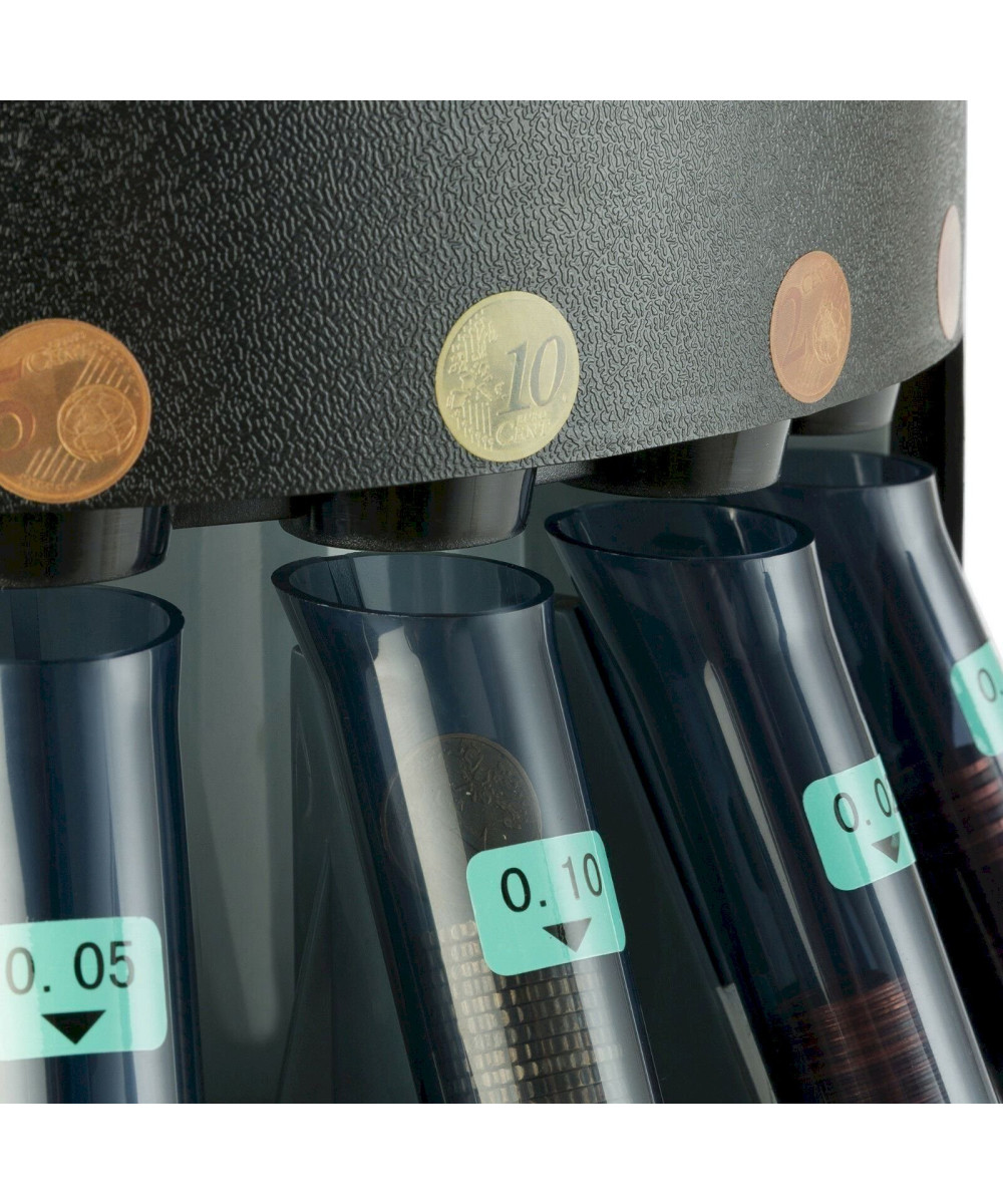 Neben der reinen Zählfunktion können Sie im Menü individuelle Einstellungen vornehmen. Legen Sie bestimmte Stückzahlen fest, zum Beispiel 10 x 1 Euro. Das Gerät stoppt nach der erreichten Anzahl – sehr praktisch für Anfangsbestände in Kassen oder Bedienungsgeldbörsen im Gastronomiebereich. Inklusive Abhülsvorrichtung.
